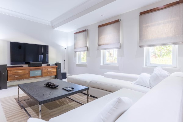 Family/TV room 1 with air conditioner, blinds, M-Net aerial, satellite dish, TV, home theatre system, sound system and surround sound