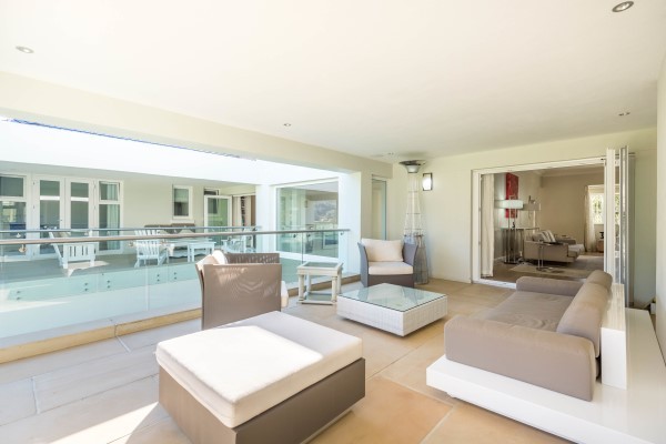 This villa has five beautifully appointed and spacious en-suite bedrooms upstairs. Three lounge areas upstairs ensure there is adequate space for large groups. The is also a second kitchen area upstairs so you will not need to go downstairs to fix up a quick snack. The light and airy master en suite bedroom has generous dimensions and picture-postcard perfect views, walk in closet and bathroom with intellegent automated lighting.The other guest suites are attractively furnished and have lovely views. Bathrooms are thoroughly modern throughout with Caesar stone wash basins.
