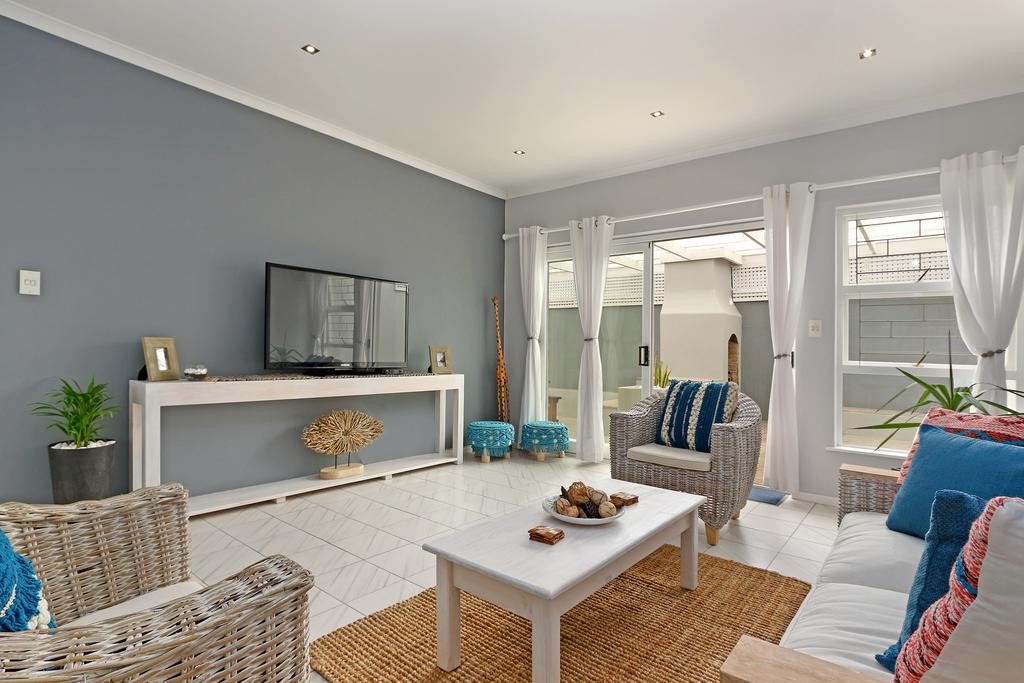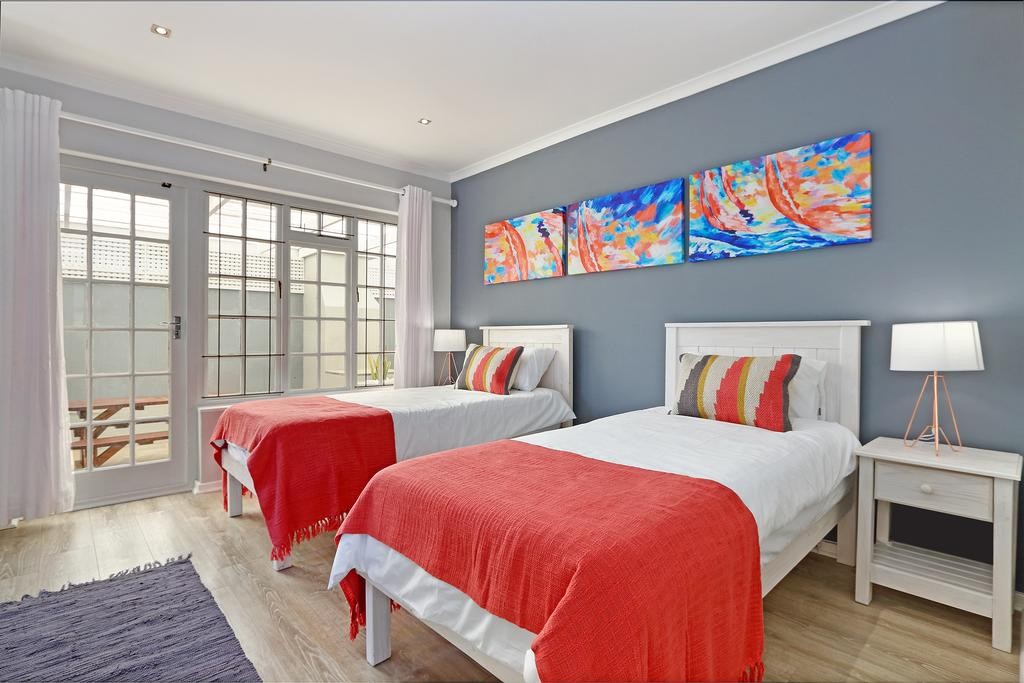 This lovely and inviting private and secure holiday home is ideal for a small getaway with friends or family, just 300 meters from the beach and a selection of restaurants and attractions in Blouberg. The spacious interior has a light and relaxing atmosphere, with the fully-equipped kitchen opening up to a stylish lounge and from there, the outdoor braai room. Both bedrooms boast 2 sets of single beds.