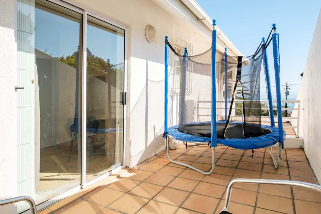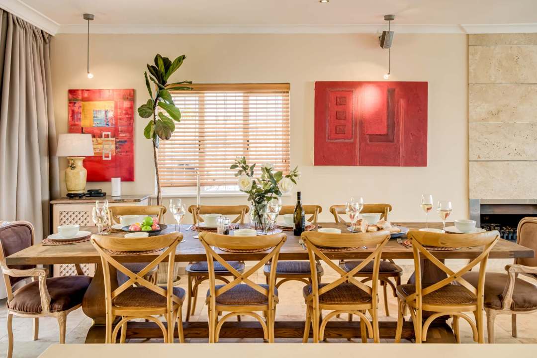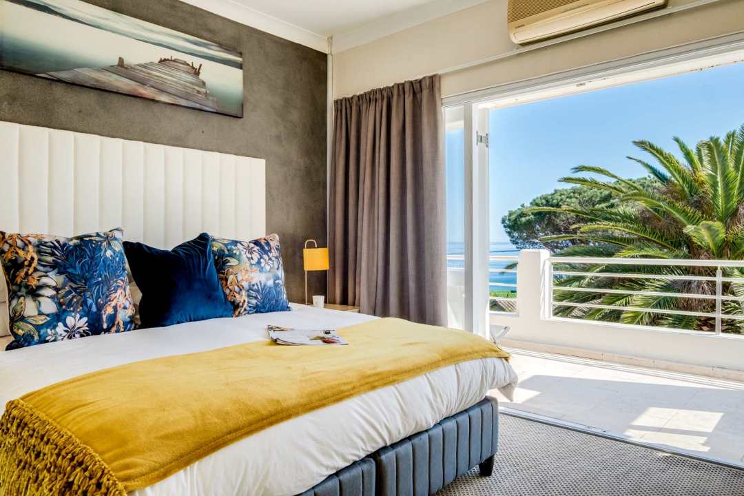 Atlantic Pearl is a captivating haven nestled in the prestigious suburb of Camps Bay, Cape Town. This elegantly designed home combines traditional aesthetics with modern comforts, offering an exquisite retreat with stunning sea and mountain views. The master bedroom features a king bed, air conditioning, access to the balcony, and an ensuite bathroom. Each additional bedroom is thoughtfully appointed, including queen beds, air conditioning, and access to balconies or private outdoor spaces. One bedroom even boasts a private balcony with a trampoline and cozy seating. The living and dining areas showcase panoramic sea views, with a gas fireplace enhancing the ambiance. The space extends to an outdoor dining area for ten, complemented by a wood BBQ, sun loungers, and a swimming pool. The kitchen is equipped with a Nespresso machine, electric hob, and air fryer, while the separate laundry provides added convenience. A study area, inverter, and security alarm round out the features, ensuring a comfortable and secure environment.