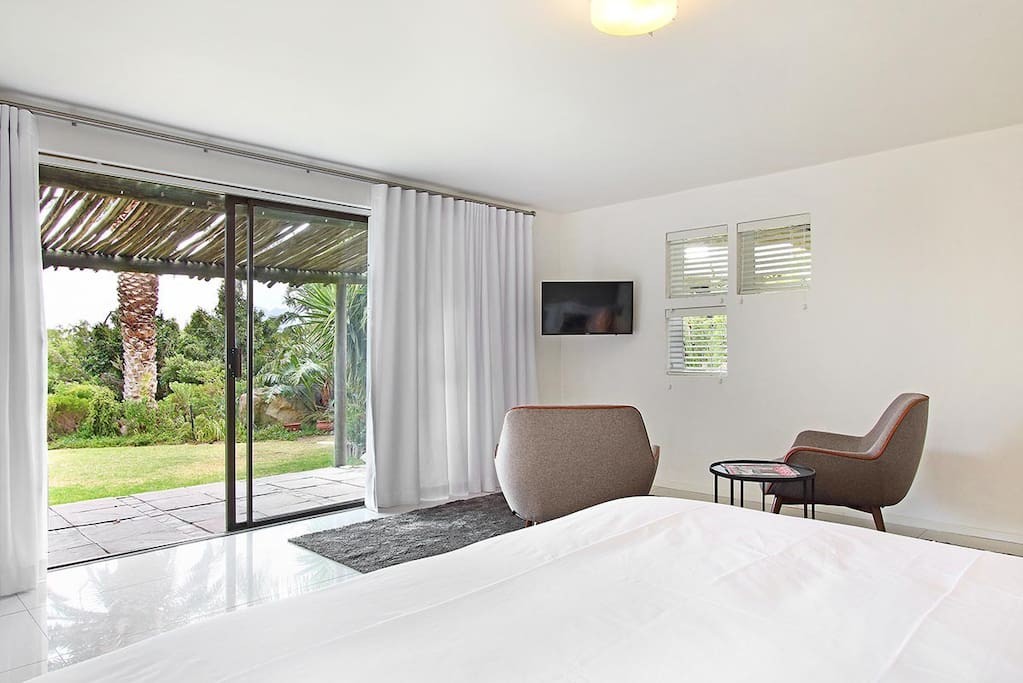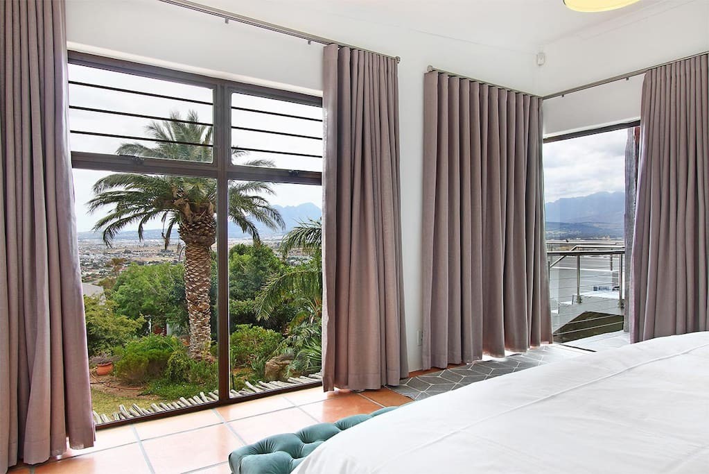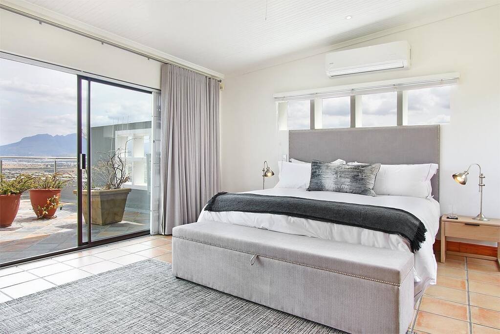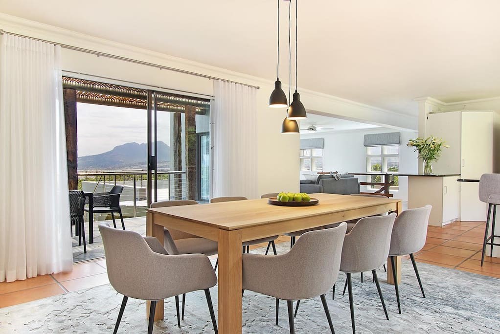 A large, private garden makes up the front of the property, with the striking Hottentots-Holland Mountains as a backdrop. The main home is very large and modern, and can accommodate 6 guests in its 3 bedrooms, while the additional self-contained cottage boasts another bedroom and opens up onto a terrace that leads to the garden – in total, Aurora Views can accommodate 8 guests.