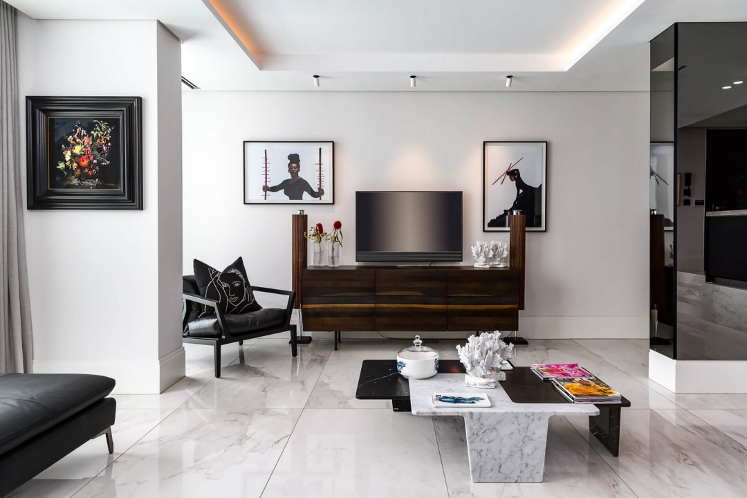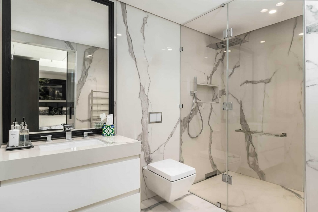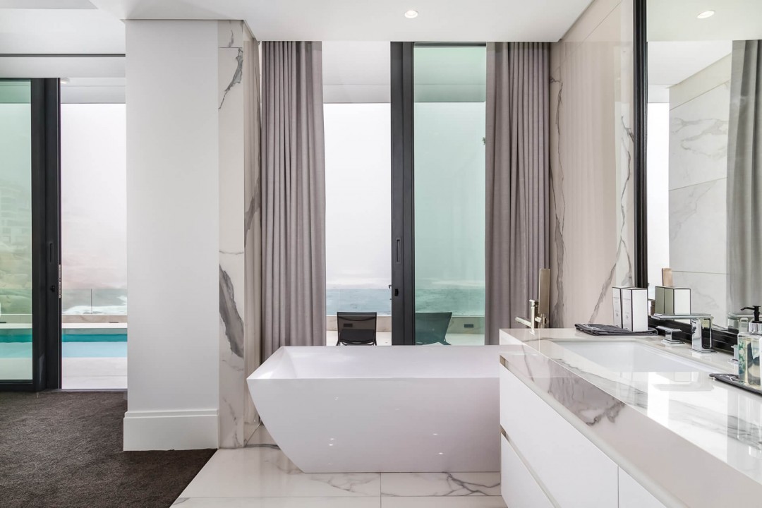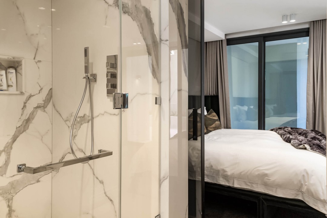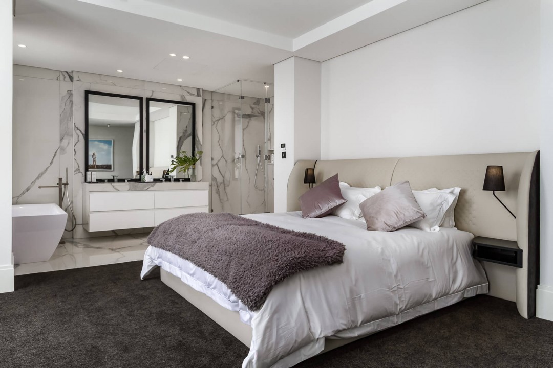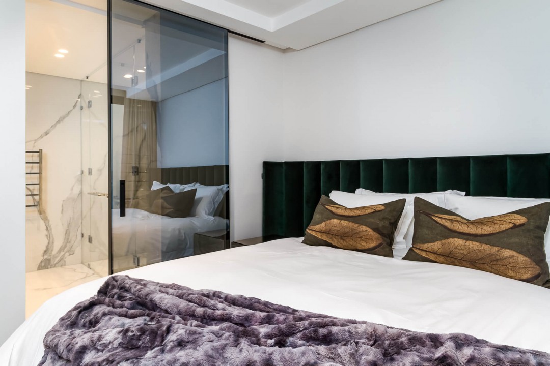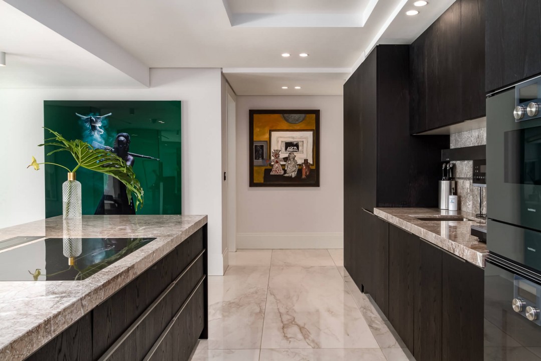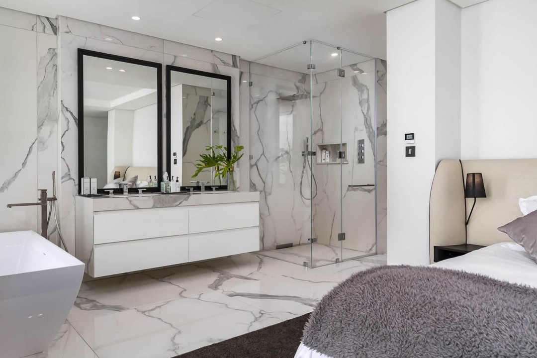 From brass sanitary ware to hingeless handmade doors with beautiful picture frame architraves, 2.5 metre vein matched marble tile flooring, Bang Olufsen TV and music systems that look like art on the walls, every detail has been carefully selected.