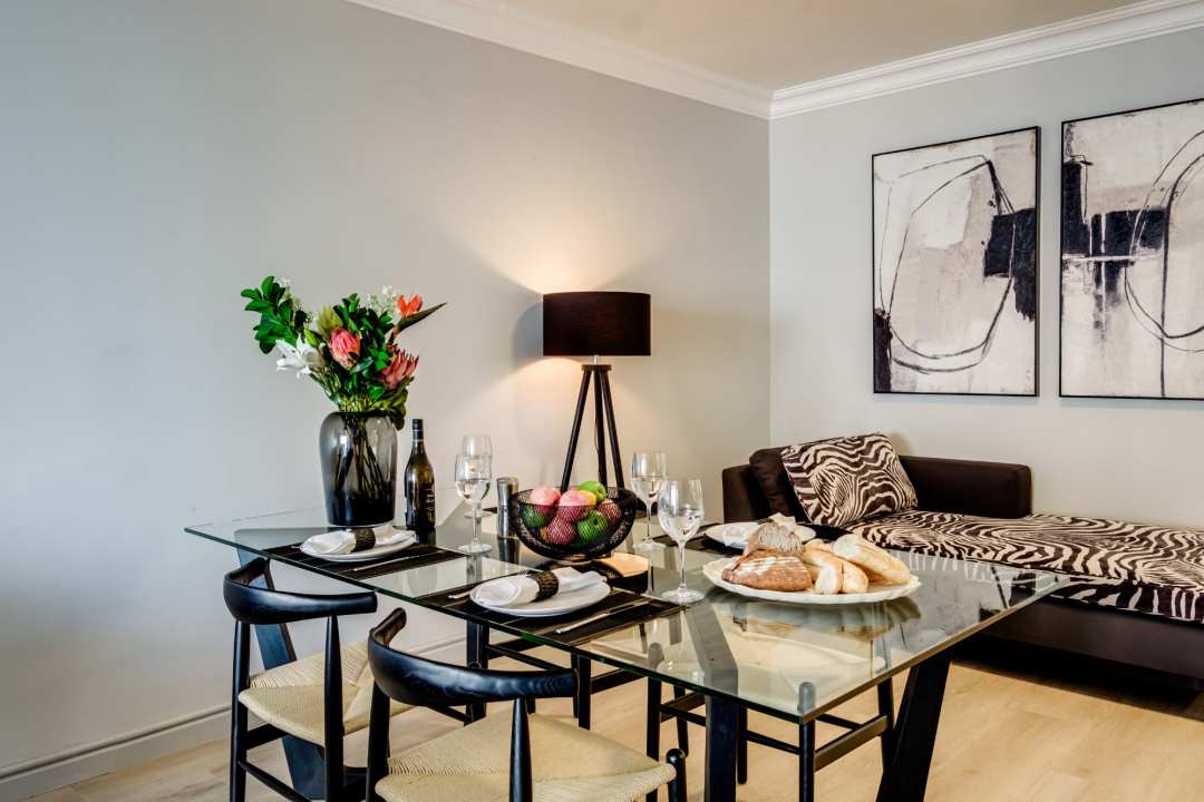 Discover the charm of Avaya Apartment, a stunning retreat located in the picturesque seaside suburb of Mouille Point. This modern apartment, infused with African design elements, offers a unique blend of style and comfort. The spacious bedroom features a king bed, ceiling fan, desk, heater, and breathtaking sea views, complemented by a dedicated bathroom with a shower and single vanity. The fully equipped kitchen includes an electric hob, Nespresso machine, dishwasher, washer, and dryer, ensuring all your needs are met. The living and dining areas are designed for relaxation and entertainment, with seating for four, a TV, ceiling fan, dining for six, and a chaise lounger. Enjoy views of the sea, stadium, and golf course from these stylish spaces. Step outside to the outdoor area, where you can unwind with bar dining for two and additional seating, all while taking in the stunning surroundings. Avaya Apartment also features an inverter, ensuring your comfort during any power interruptions. Experience the perfect blend of modern luxury and African flair in this exceptional seaside escape.
