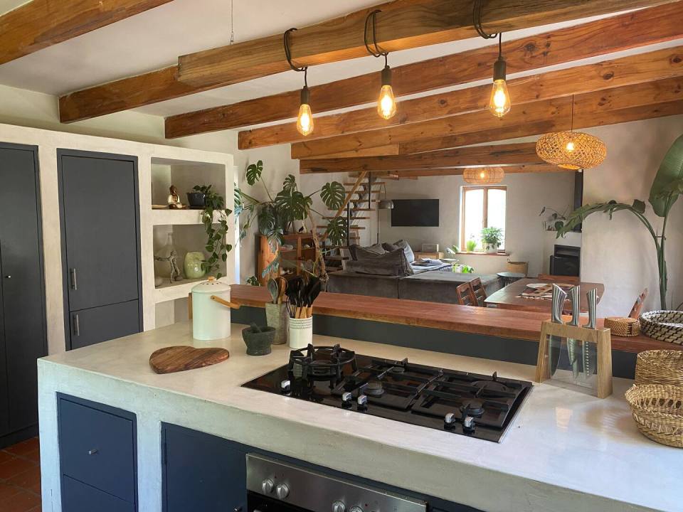 This serene home offers the perfect blend of contemporary comfort and country charm, making it an ideal retreat for families or groups seeking relaxation and restoration. The open-plan layout encourages shared moments indoors, while the sunny courtyard, swimming pool, fire pit, and hammocks under the trees create peaceful outdoor escapes.