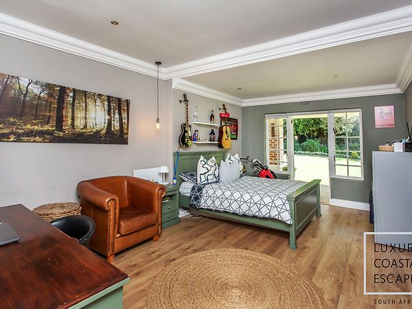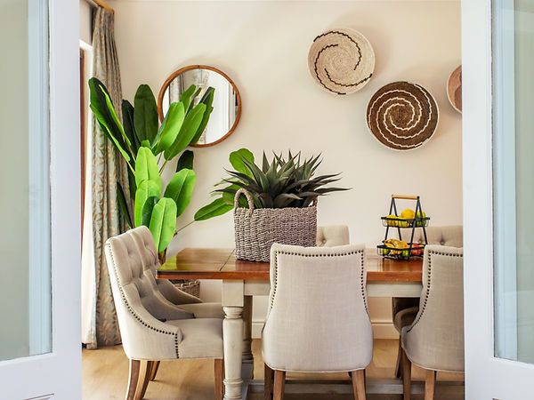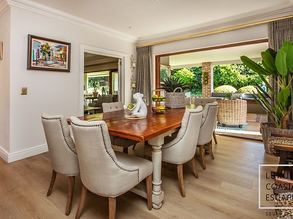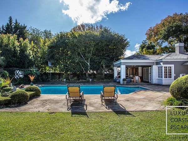 Set in the heart of leafy Constantia, this character-filled family home offers a peaceful retreat where classic charm meets modern comfort. From the moment you step through the arched entrance hall, a sense of warmth and tranquillity sets the tone. Surrounded by a lush private garden and mature greenery, the home invites relaxed days outdoors and easy family living, making it an ideal choice for guests seeking a refined yet comfortable Cape Town escape.