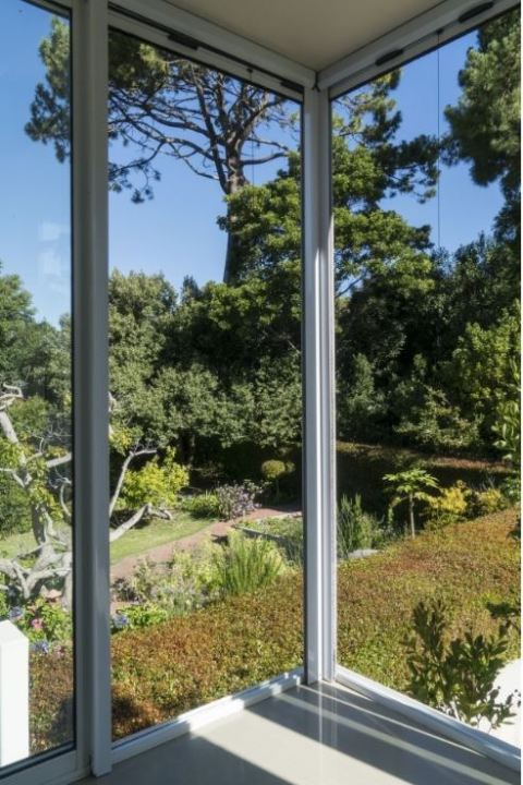 It has big beautiful spaces.  One can curl up in one of the smaller lounges or spread out in the cinema room with the doors wide open, letting the cool summer breeze in. Whichever you choose, you will always have that view.