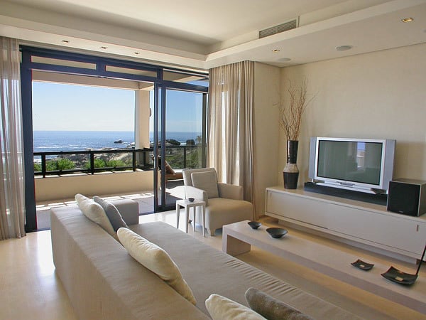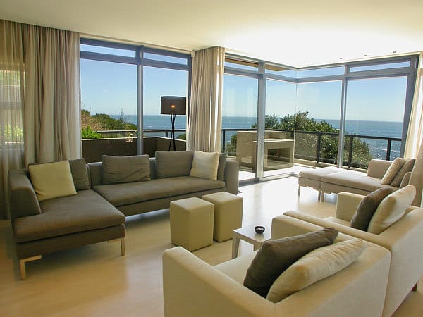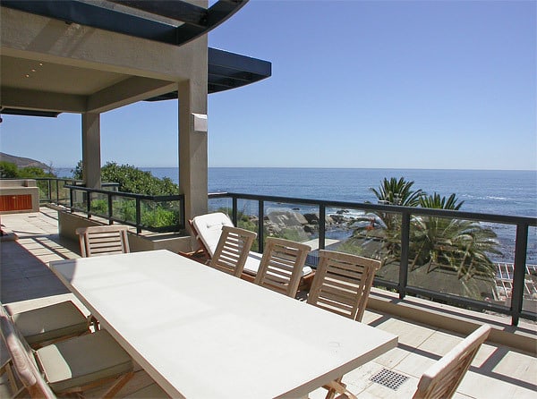 The apartment’s has three magnificent bedrooms, with each one easily accommodating two guests. Two of the bedrooms feature their own en-suite bathroom, with a third, separate bathroom also included. Beautifully bedecked in tasteful white furnishings, the bedrooms are spacious and comfortable to ensure only the most soothing of sleeps. Uninterrupted views of our world-famous oceans can be enjoyed from each room, with a large patio off the main living area offering the most incredible views this side of the Atlantic Seaboard. Enjoy cocktails at sunset, or leisurely breakfasts on clear Cape mornings – or relax with a scrumptious South African style barbeque.