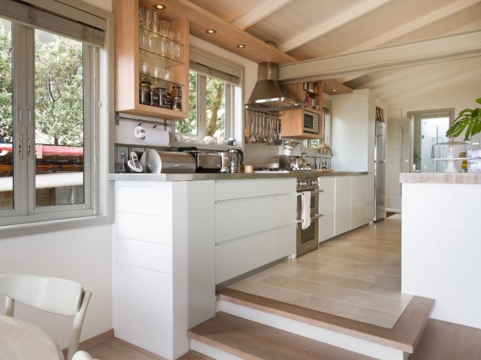 This is the perfect place to relax after a day of exploring, or you can visit the serene beach below. Both bedrooms are nautical themed, with white-washed furniture and crisp white linen to inspire a peaceful night’s sleep. The master suite has a King-size bed, an en-suite bathroom and sliding doors onto a private balcony with sea views. The second bedroom is accessed via the courtyard, offering more privacy. It has a three-quarter bed and an en-suite bathroom.