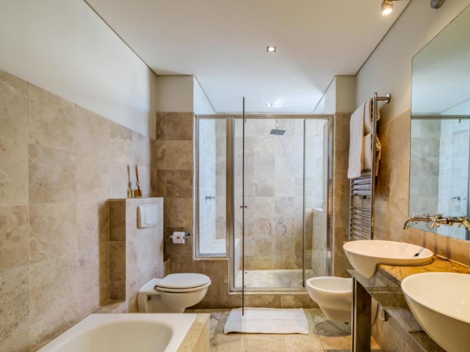 The master bedroom has direct access onto the terrace and plunge pool through stackable doors. The second bedroom has a Queen bed, an en-suite bathroom with a shower and/or bath, and heated towel rails. There is also air conditioning throughout.