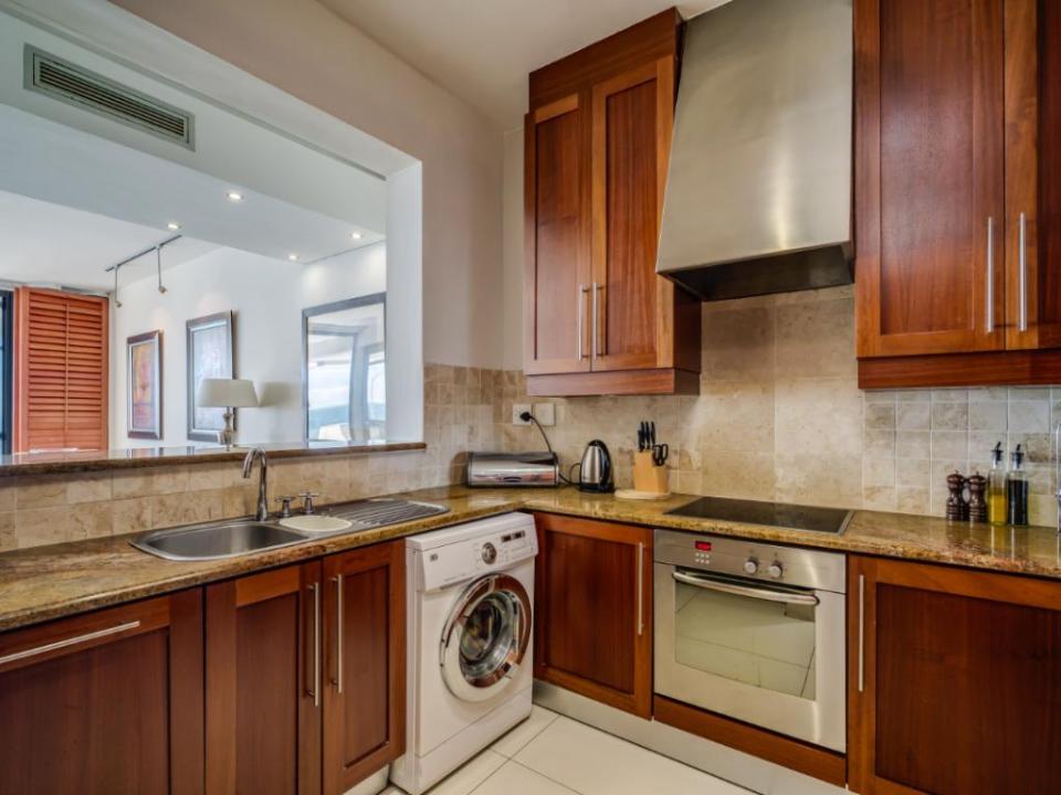 The living areas flow out on to a terrace with outdoor dining, a corner plunge pool and unrivalled ocean views. The kitchen offers appliances for easy holiday living and is connected to the dining area with an open serving counter, making the apartment ideal for entertaining.