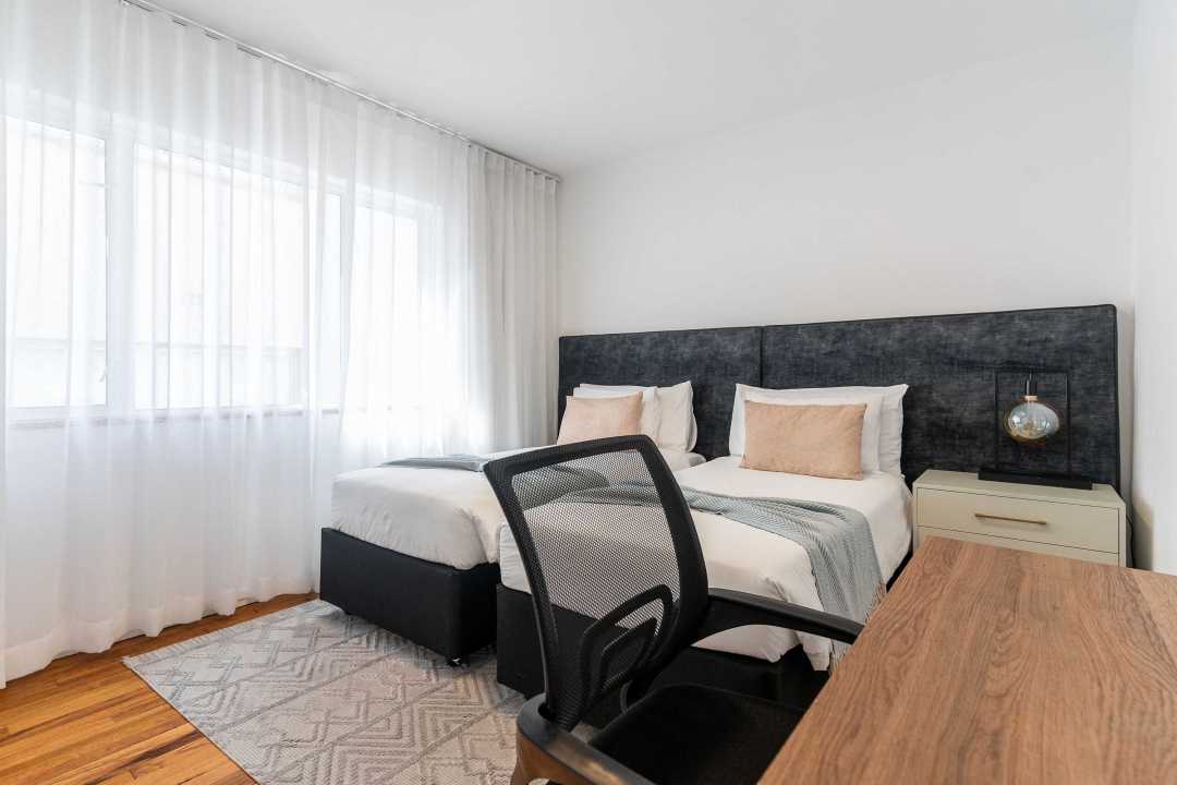 Relax and rejuvenate in the spacious main bedroom, featuring a plush king-size bed, air conditioning, and captivating glimpses of the ocean. The second bedroom offers a peaceful ambiance, while the third bedroom provides flexibility with twin beds and a practical workspace.