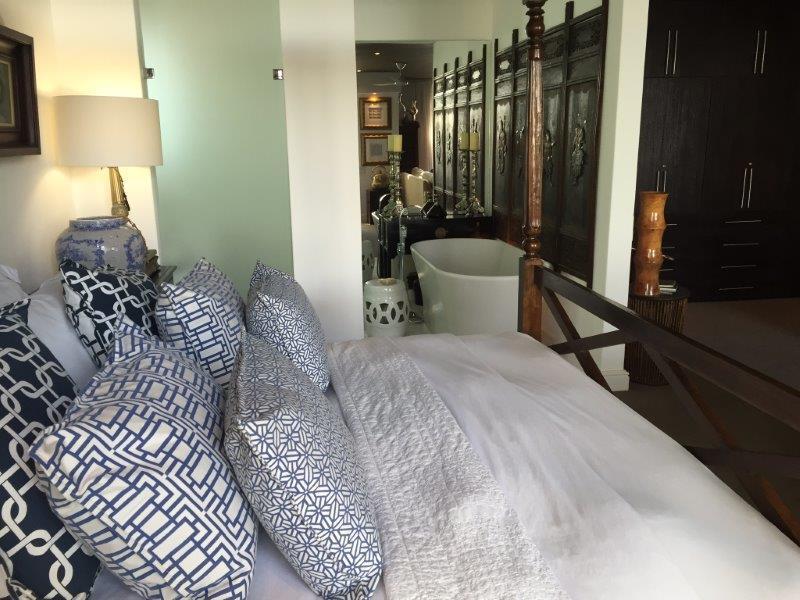 The main bedroom has a sitting room as well and a large screen flat screen TV. Has an en suite bathroom with bath as well as outside shower. It has the most beautiful feel to it with the greenery and the amazing views of the ocean.