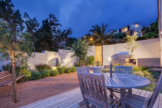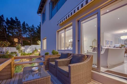 Open plan and exquisitely furnished lounge/dining room and TV room leading onto enclosed terrace with large sliding windows all overlooking the ocean. The TV room leads onto a private deck with large gas BBQ and onto a garden which has views to Table Mountain and the Ocean.
