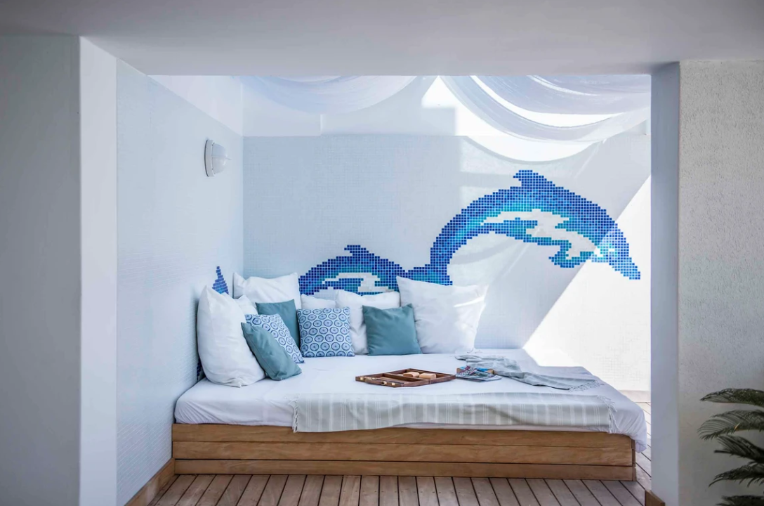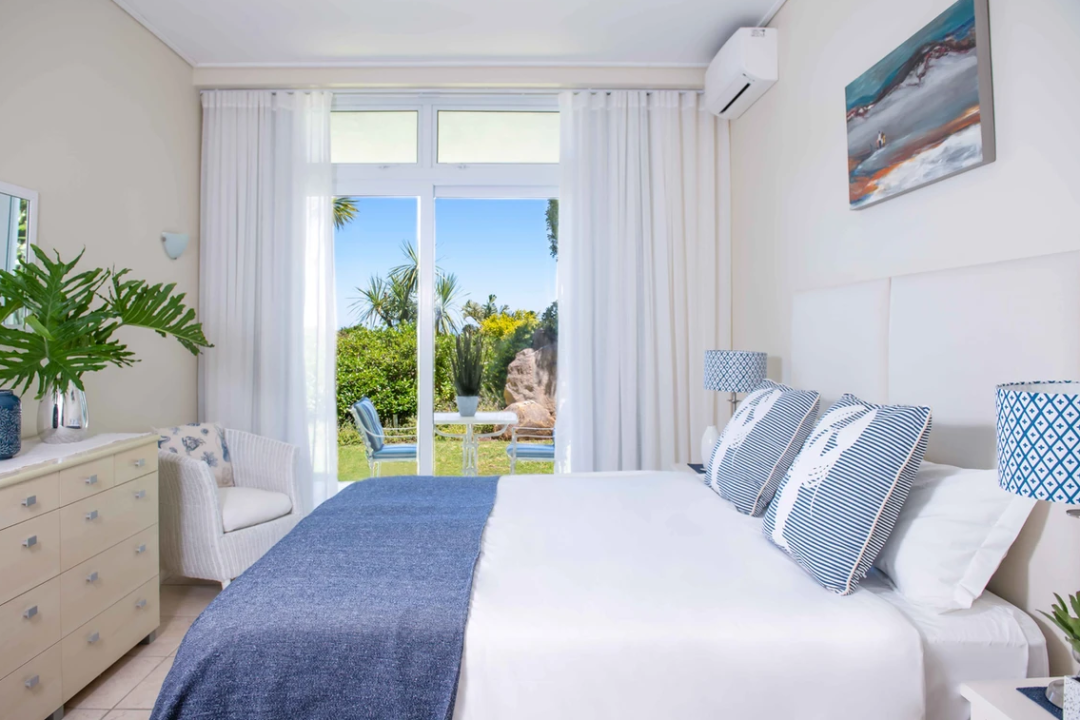 Luxury sea-facing bedroom with twin beds, aircon & newly renovated bathroom with walk-in shower