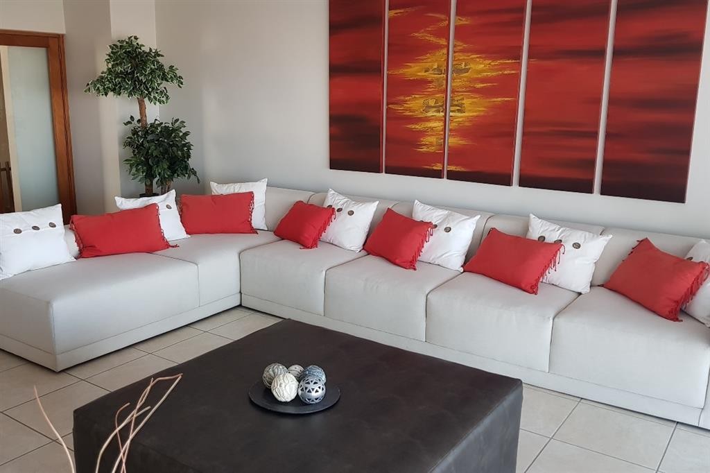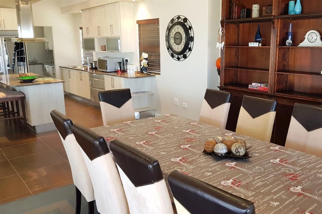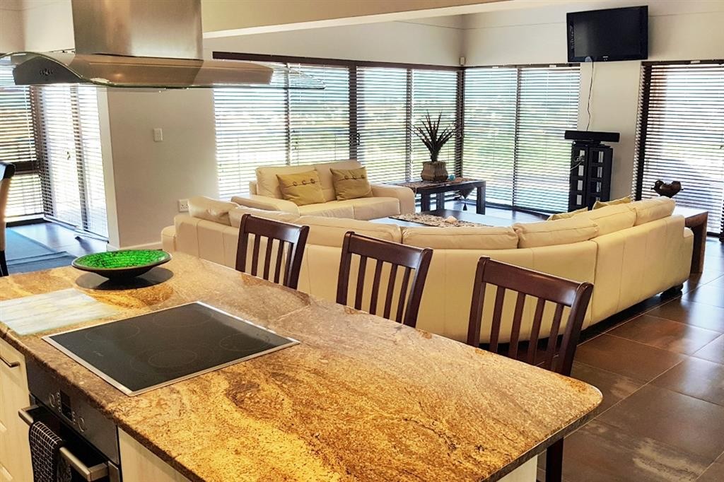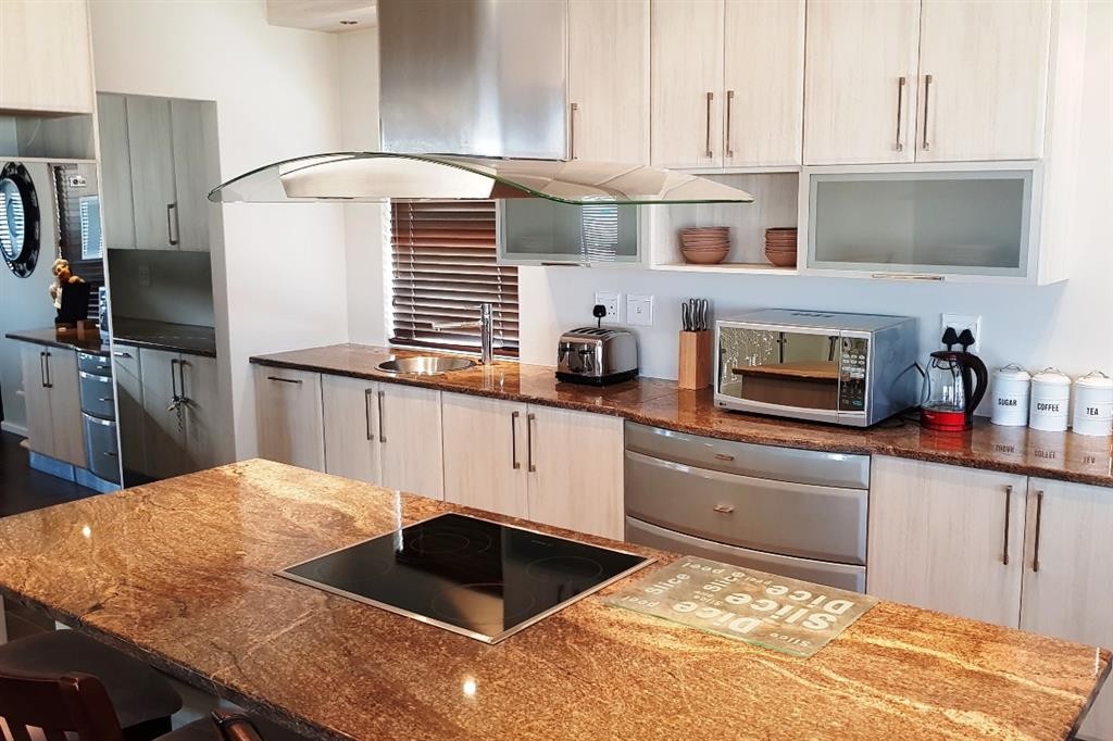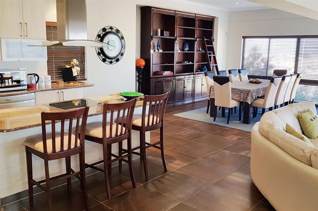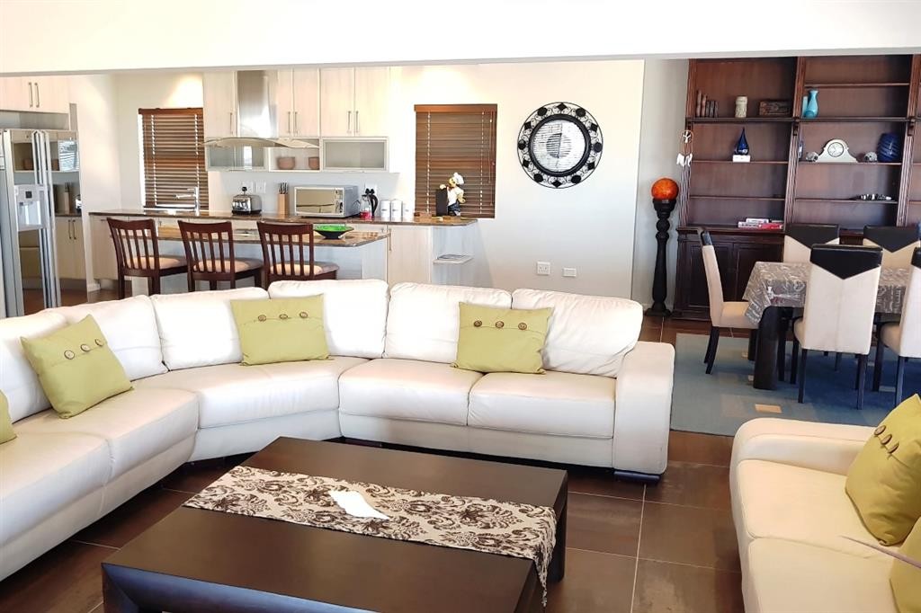 This lovely double storey house is modern, spacious, comfortable and stylishly furnished with quality furniture. The house enjoys lovely sea and fairway views from both floors, but especially so from open living area and large sheltered stoep on the 1st floor.