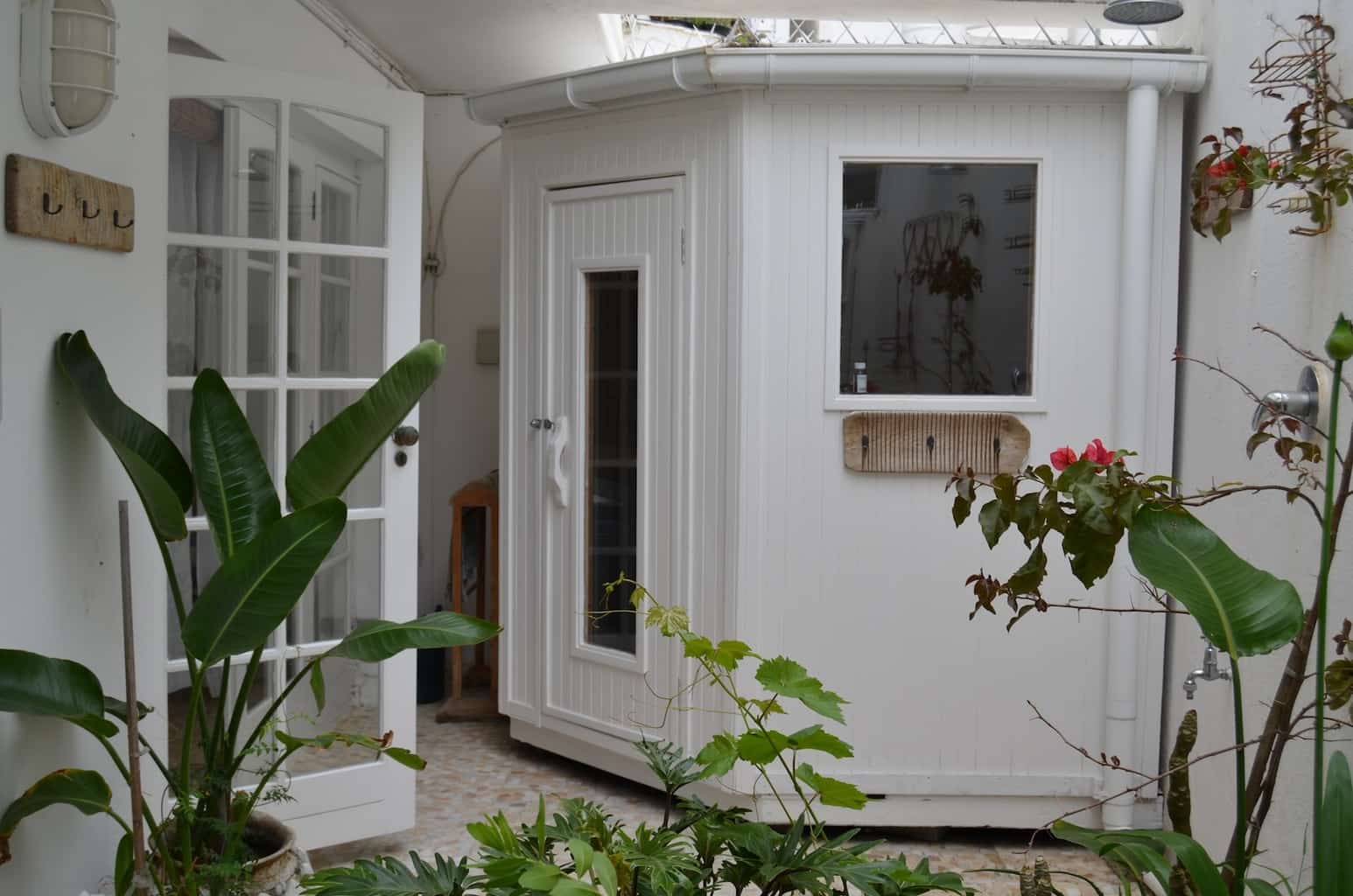 room lead onto this). Lower level has a private courtyard with sauna and outside shower.