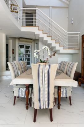 - Indoor dining for 18 guests (main dining table for 10 and breakfast table for 8)