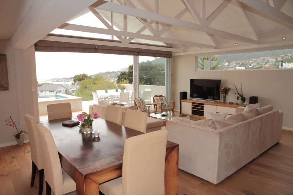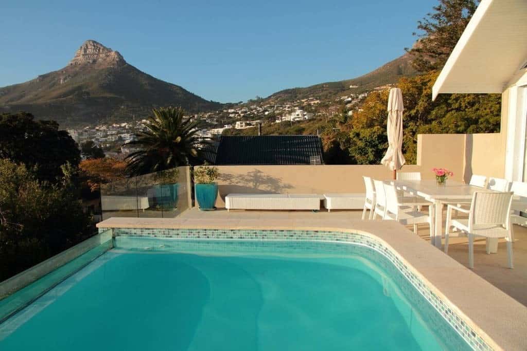 Spacious 4 bedroom double story house with a 2-minute walk to Camps Bay Beach. Is suitable for a big group of people. Upstairs is a beautiful open plan kitchen, guest toilet, lounge/dining room which opens up onto a pool deck with great views of the sea, Lions Head and Table Mountain. Outdoor facilities include a swimming pool, gas and built-in braai.