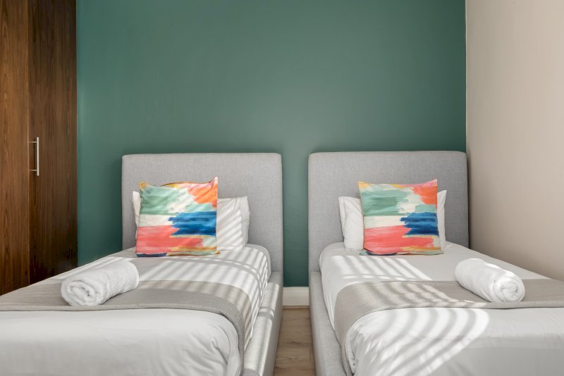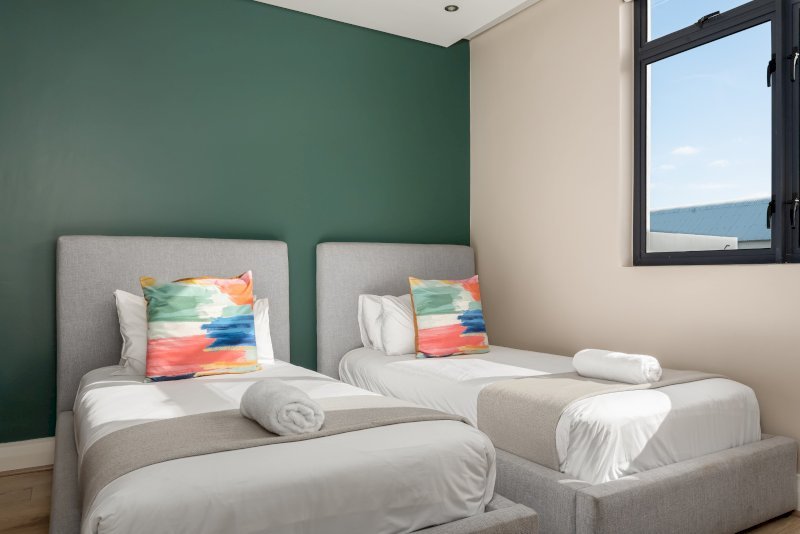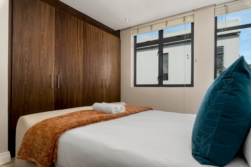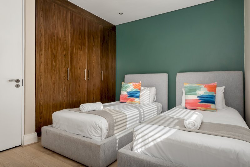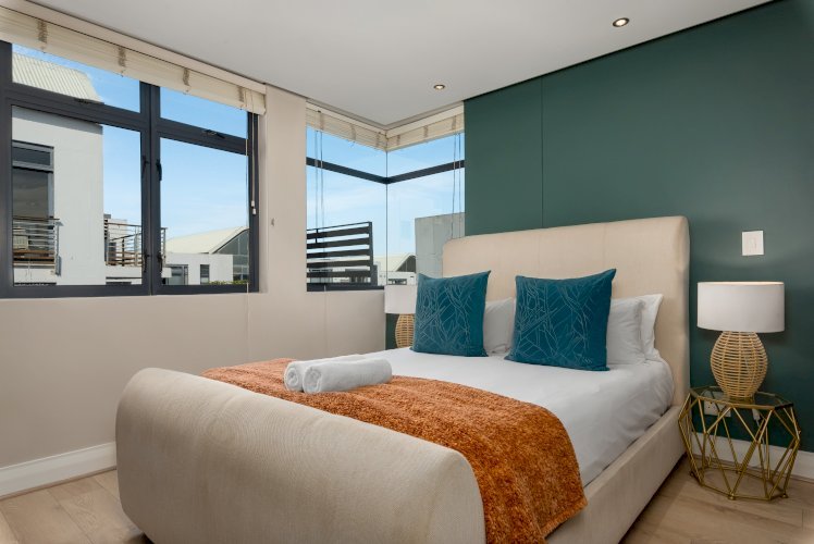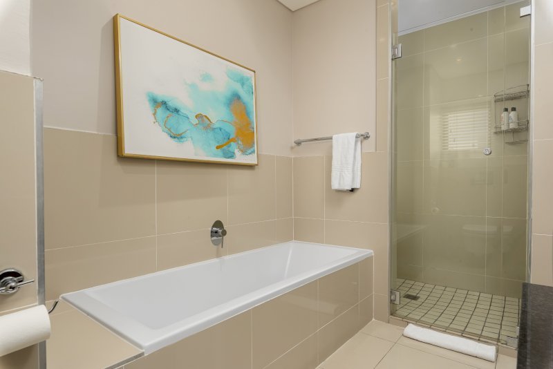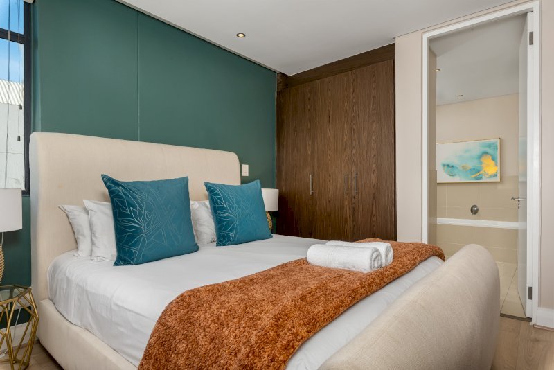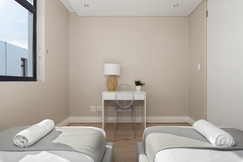 This apartment is located in a secure block with 24-hour security on site. It offers two comfortable bedrooms and 2 bathrooms with walk-in showers. It has a modern open-plan kitchen and living room with a balcony.