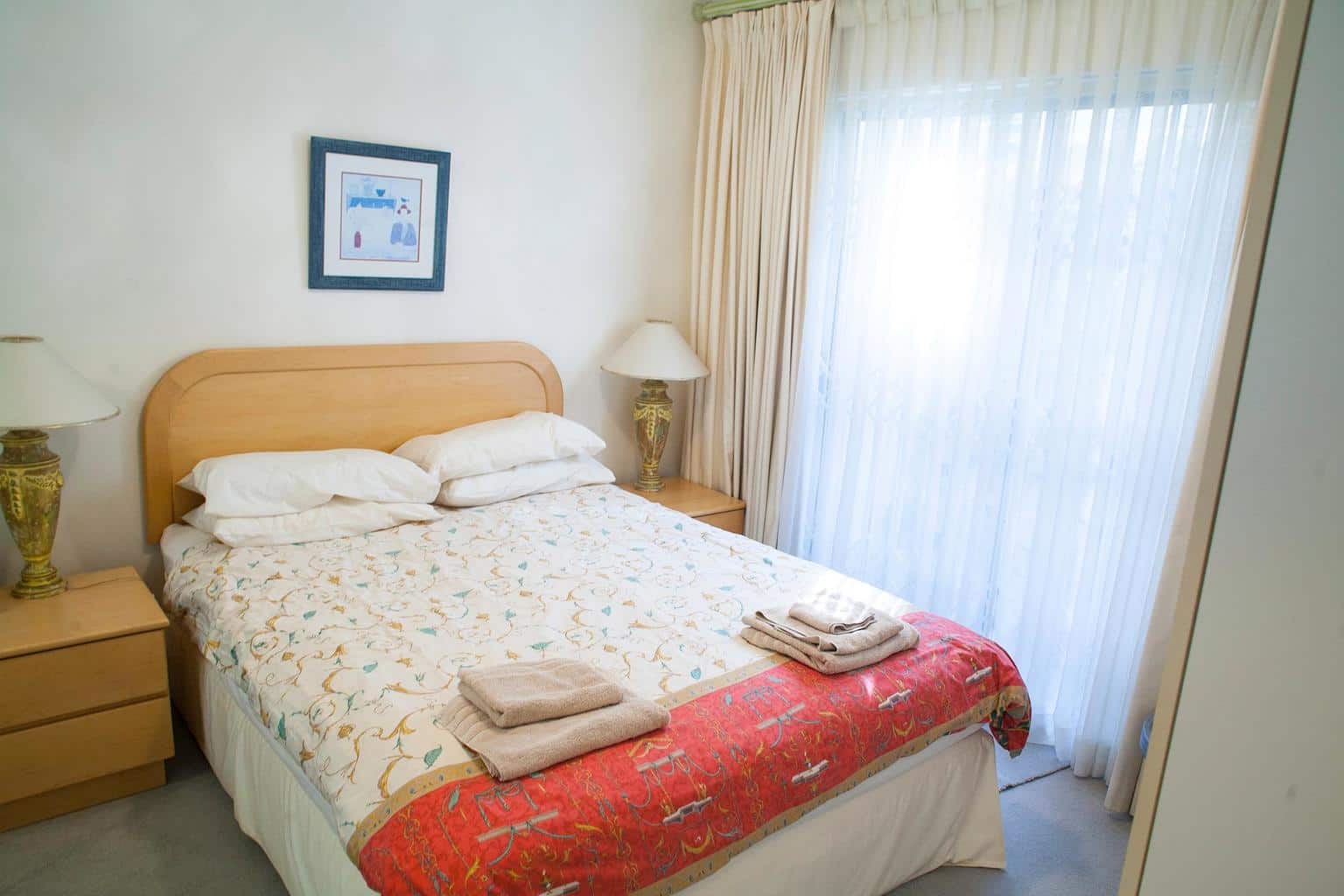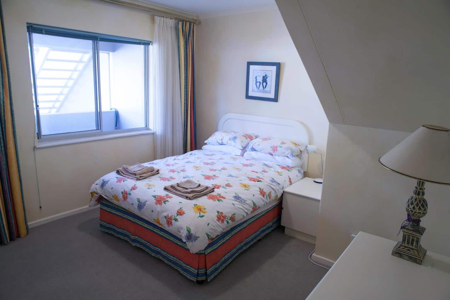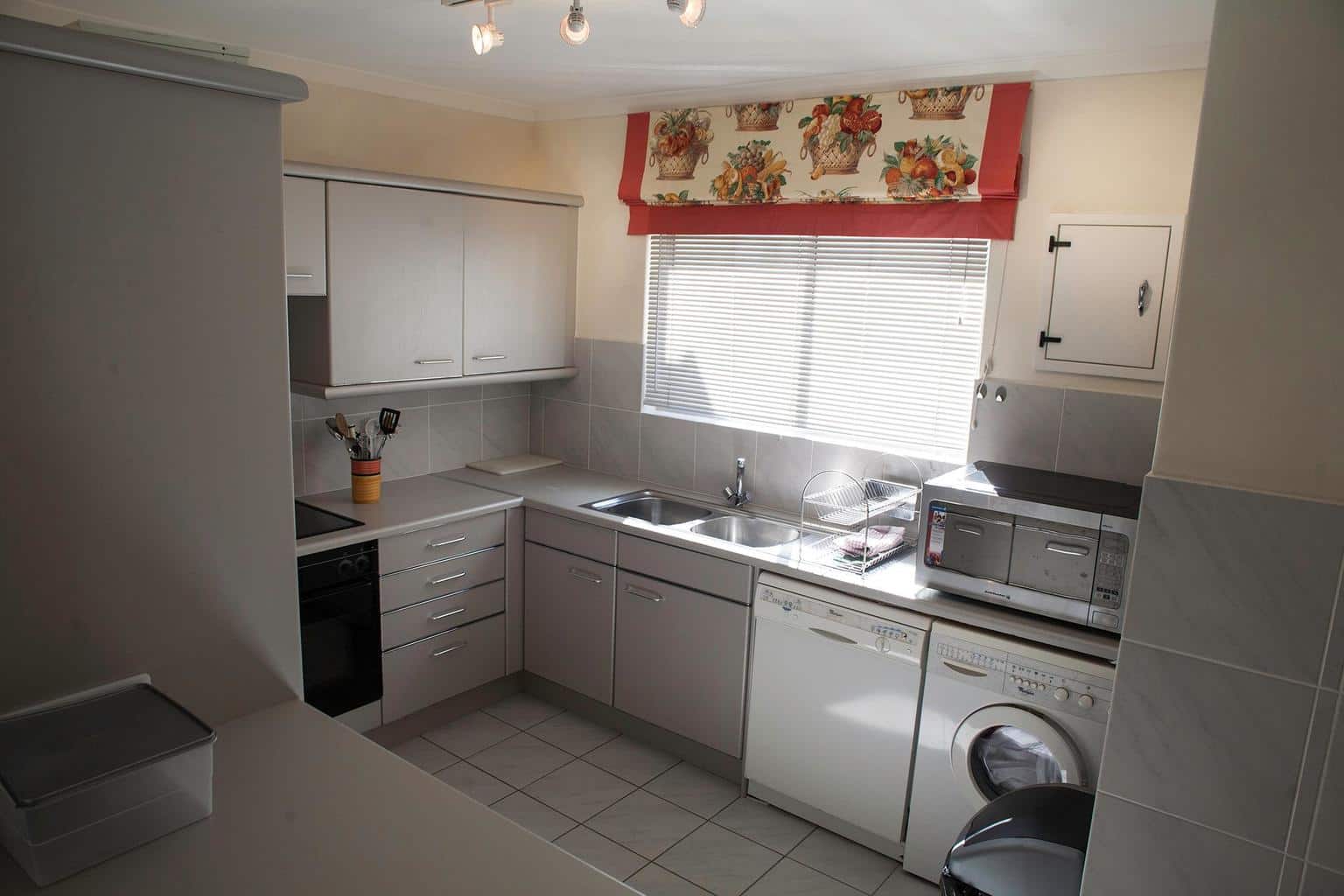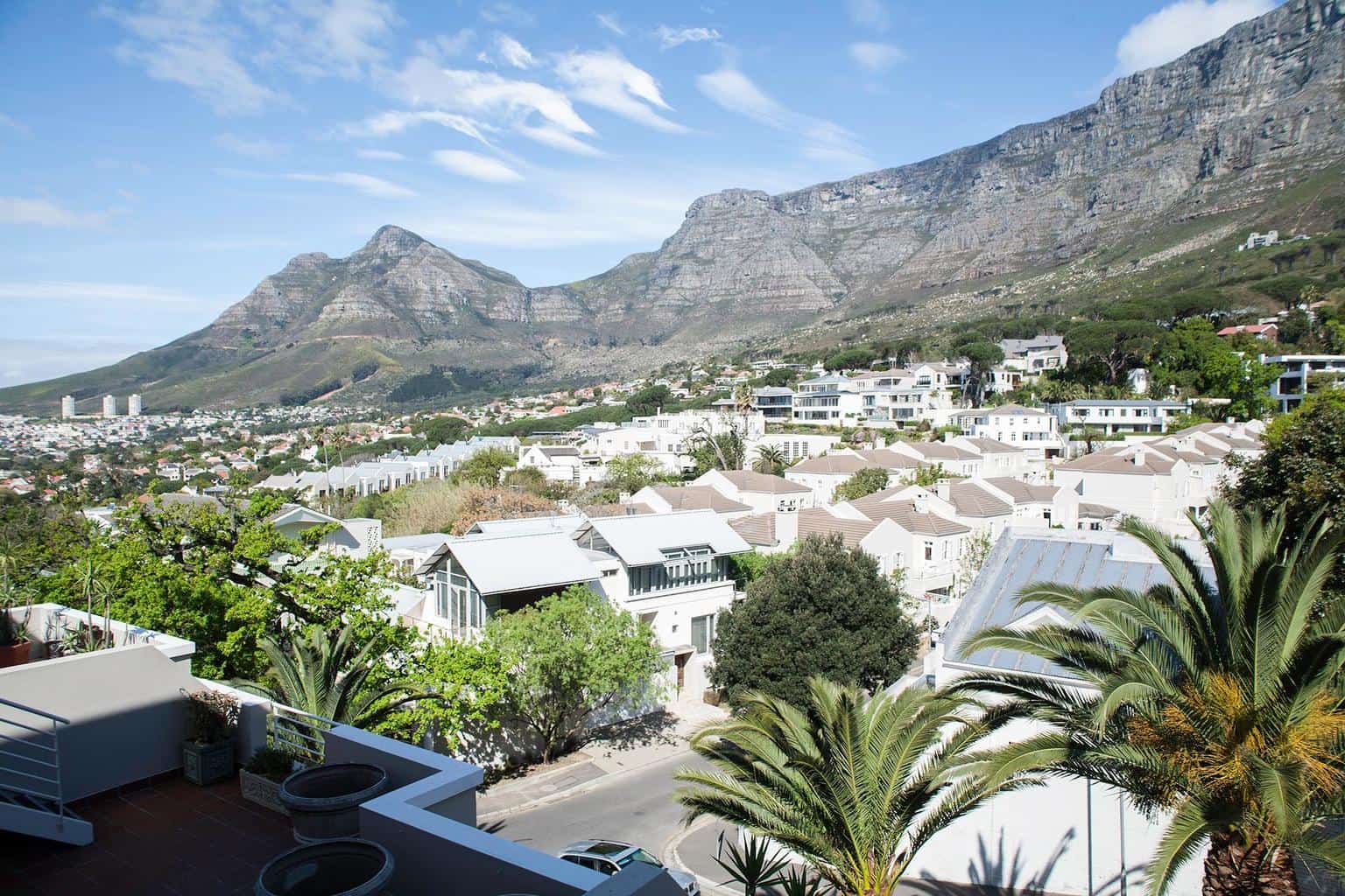 It is on two levels with bedrooms downstairs and living area upstairs. There are two outside entertainment areas, ideal for summer barbecues. The apartment comes fully furnished and fully equipped with beautiful views of Table Mountain.