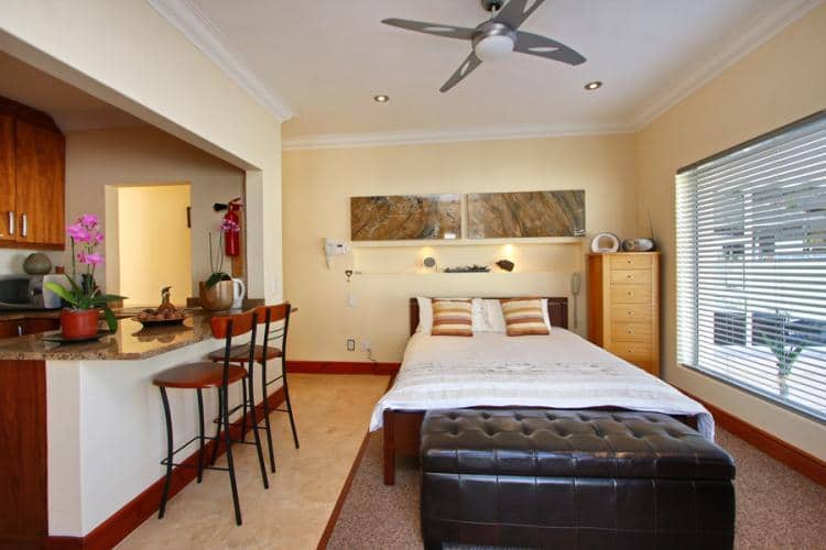 Benguela Studio is perfect for the travelling couple looking for a short term stay or even a long-term lease. Completely secure, air-conditioned for the warmer months, heated by underfloor heating for winter chills and a WiFi hotspot throughout makes this luxury studio apartment a great travellers choice.