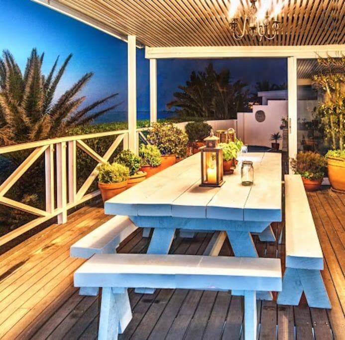 By day or by night, when the sea is calm (most of the summer), there is nothing more enticing than to sit on this patio and look out over the ocean.