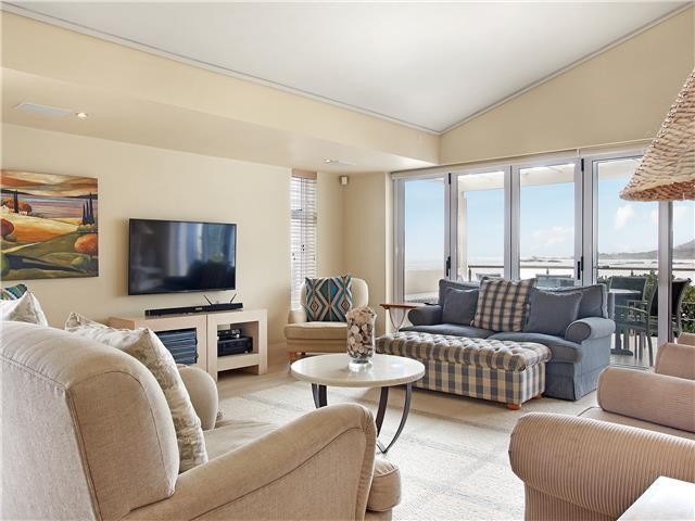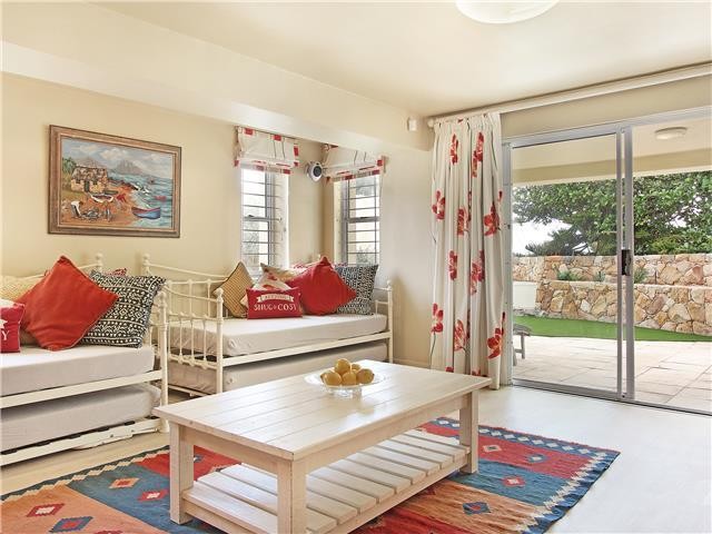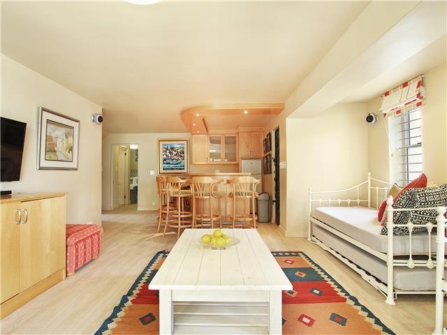 This four bedroom beach bungalow leads directly onto Bakoven beach and has magnificent views over the ocean towards Lion’s Head. Feel the sand between your toes a mere 5 metres from the garden gate. The trendy Camps Bay strip with its numerous restaurants, beach and shops is within walking distance.