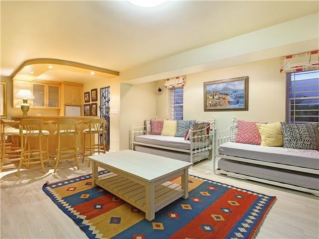 Large glass doors lead onto the upstairs balcony with BBQ, to maximize the enjoyment of the sea breeze and the incredible sea views. Relax in the sun either on the top balcony or in the garden below.