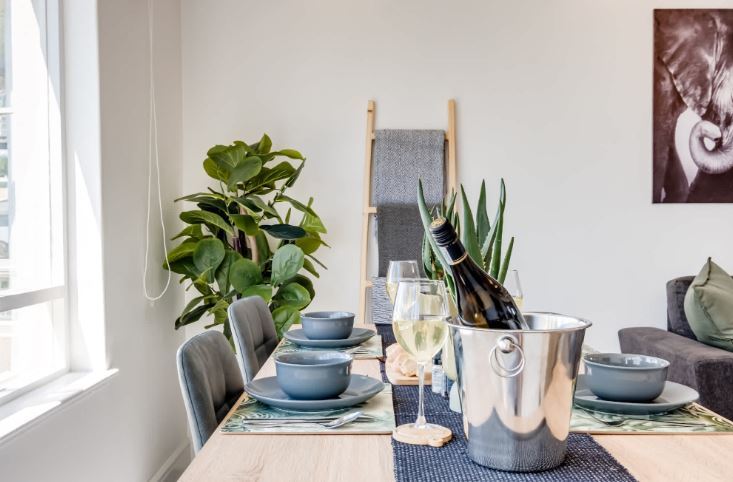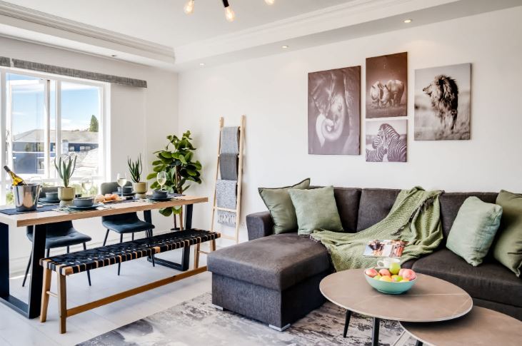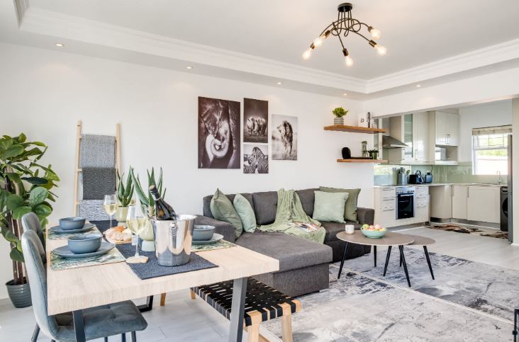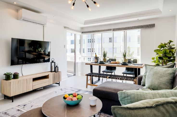 Nestled in the affluent suburb of Green Point, ‘Between The Points’ is a modern apartment that blends comfort and style. The spacious bedroom features a queen bed and a desk, along with access to a private balcony with stunning sea and mountain views. A dedicated bathroom, complete with a bath, shower, and single vanity, ensures a serene retreat. The kitchen is equipped with an electric hob, air fryer, Nespresso machine, and washing machine, making it ideal for casual dining. The living and dining areas provide a welcoming atmosphere, with seating for three and a dining table for four, all framed by beautiful vistas. Air conditioning adds to the comfort, while a TV invites relaxation after a day of exploration. Families will appreciate the high chair and cot available for a young child. Step outside to enjoy the outdoor seating area, perfect for soaking in the surroundings. With nearby attractions like the V&A Waterfront, Sea Point Promenade, and DHL Stadium, this apartment serves as a great base for enjoying the vibrant lifestyle of Green Point.