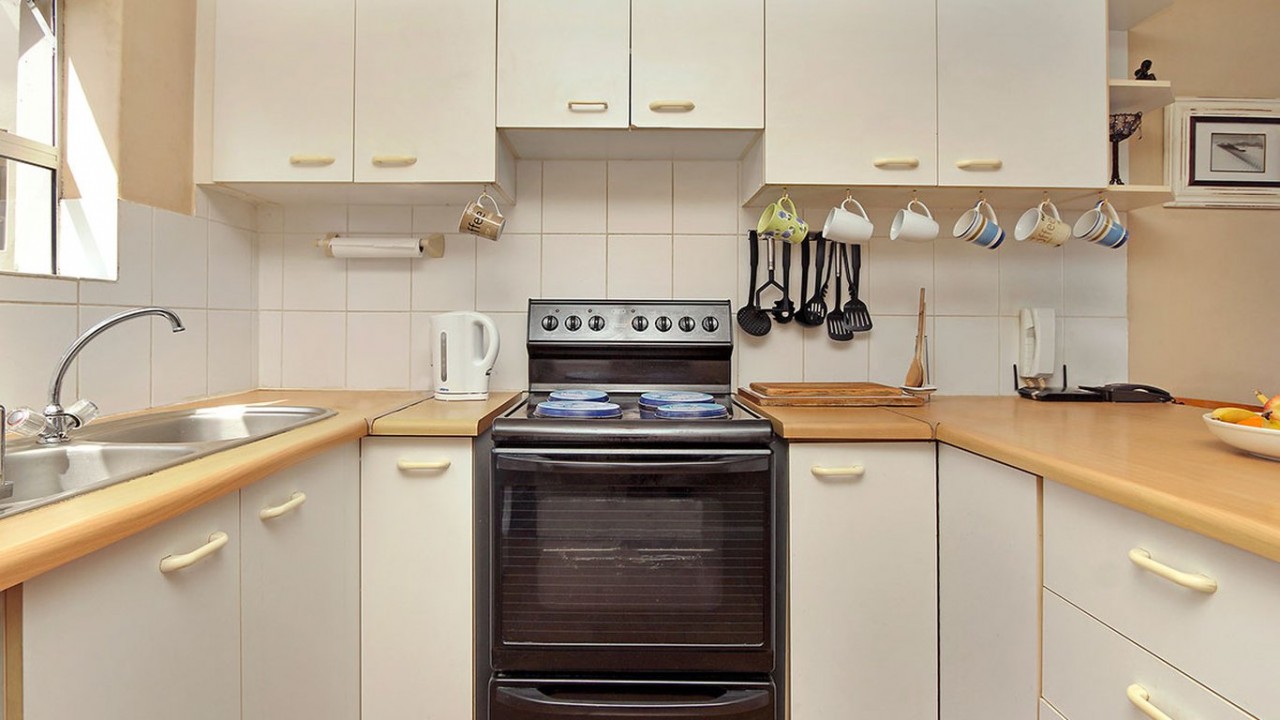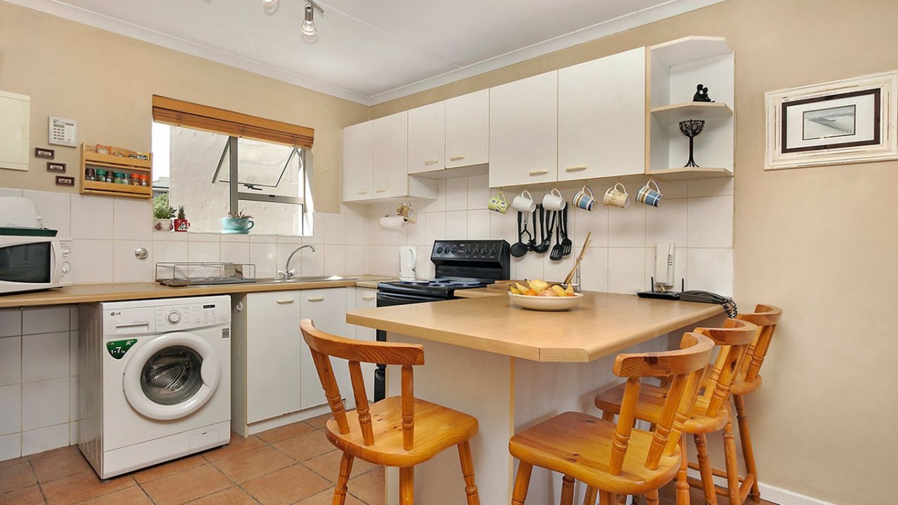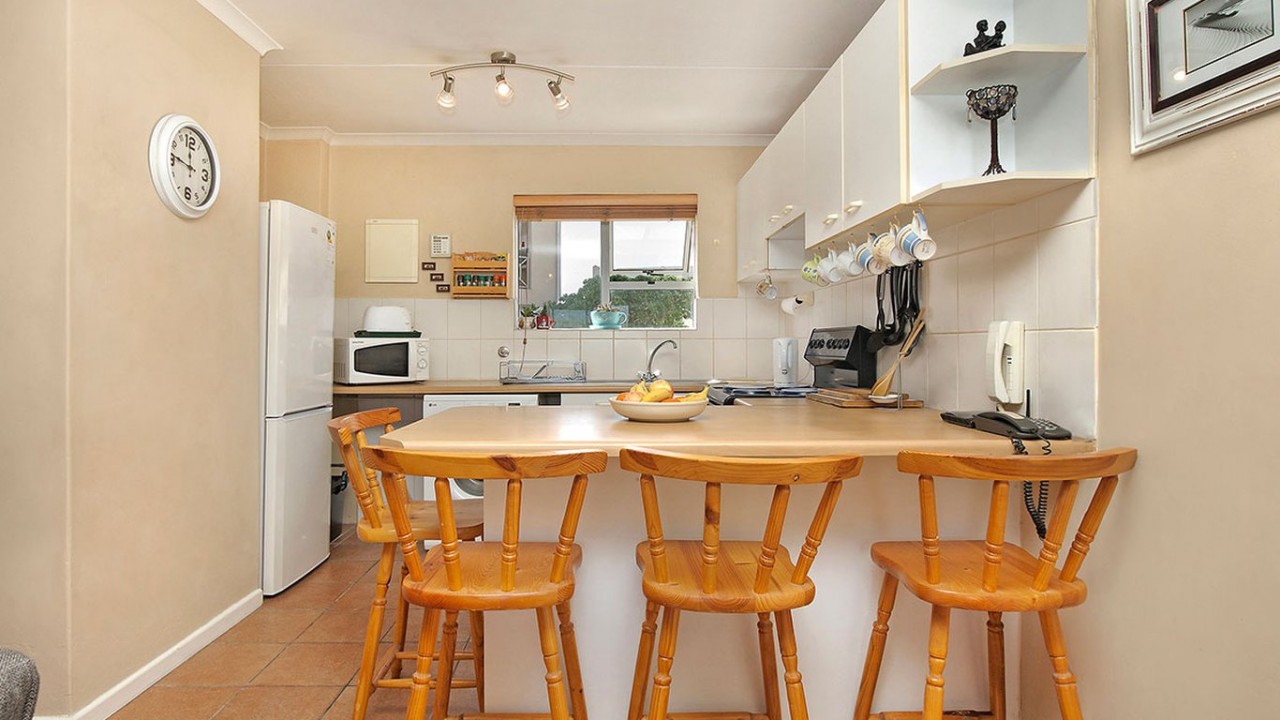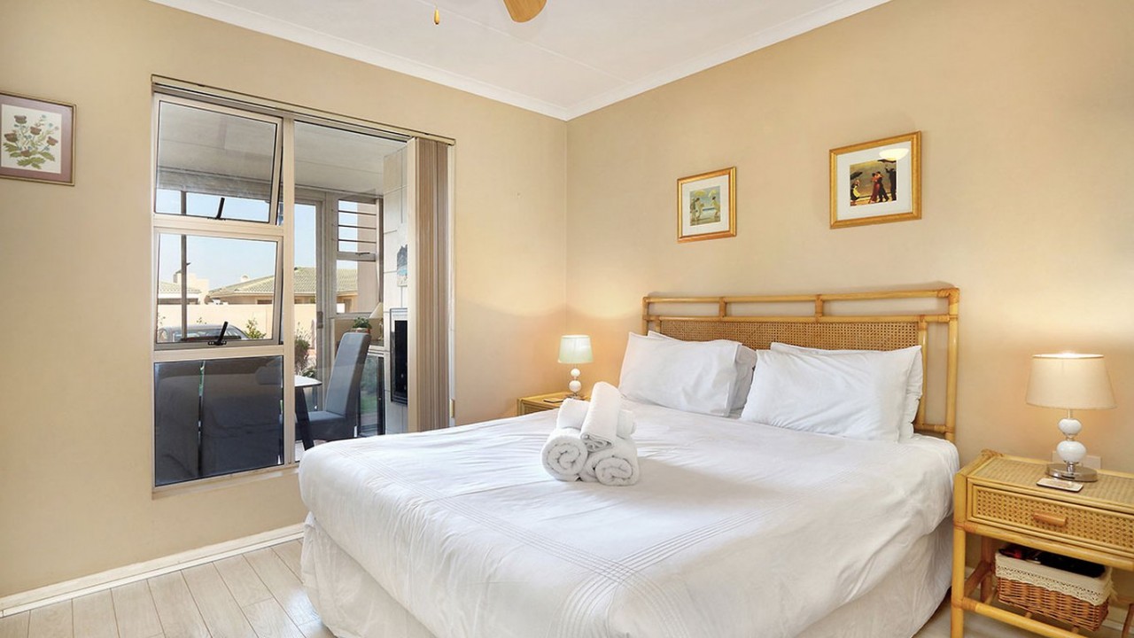 This beautiful 2 bedroom apartment is equipped with everything you need for a self catering holiday in Cape Town. The main bedroom comprises of a Queen size bed and is fitted with a ceiling fan for those hot summer evenings. The second bedroom comprises of 2 x single beds and features a big window that floods the room with sunlight. The bathroom is fitted with a shower, bath and toilet.