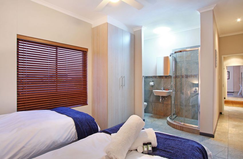 The nearby dining area has a casually designed table that seats 4 and the roomy living area consists of a wealth of comfortable seating, flat screen TV and a DStv subscription.