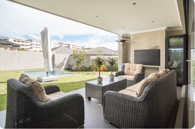 The house is in a very secure complex with 24 hour security, has its own pool and trampoline in the garden. Its simply a must for your holiday by the beach.