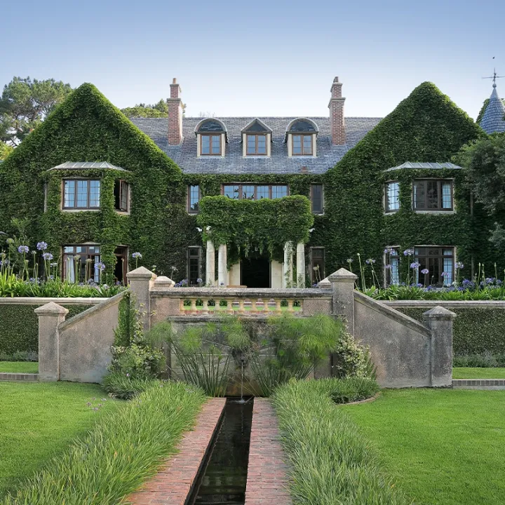 Bishops Hall is a classically timeless estate nestled in the verdant suburb of Bishopscourt, at the foot of Table Mountain. Enrobed in ivy that transforms with the seasons and framed by lush gardens, this graceful family retreat feels like stepping into the pages of a beautifully illustrated storybook. Tradition and glamour meet contemporary countryside living in a home that has been meticulously restored to offer both heritage charm and modern comfort.