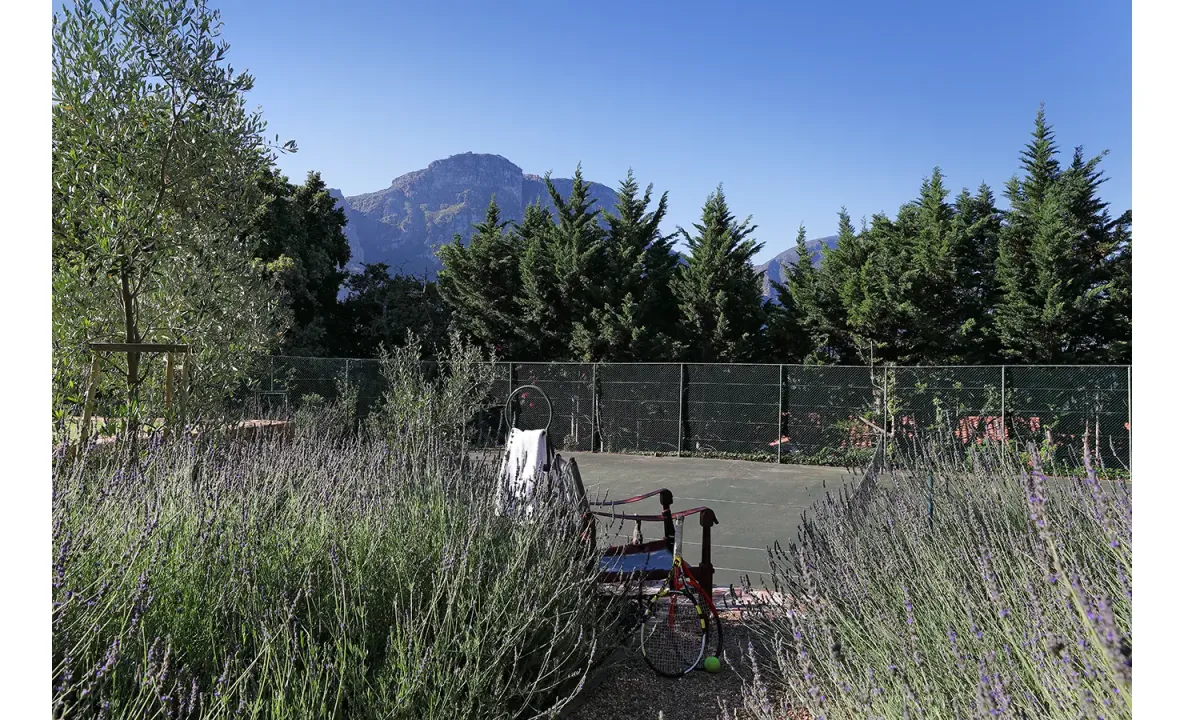 Tennis court and pétanque area