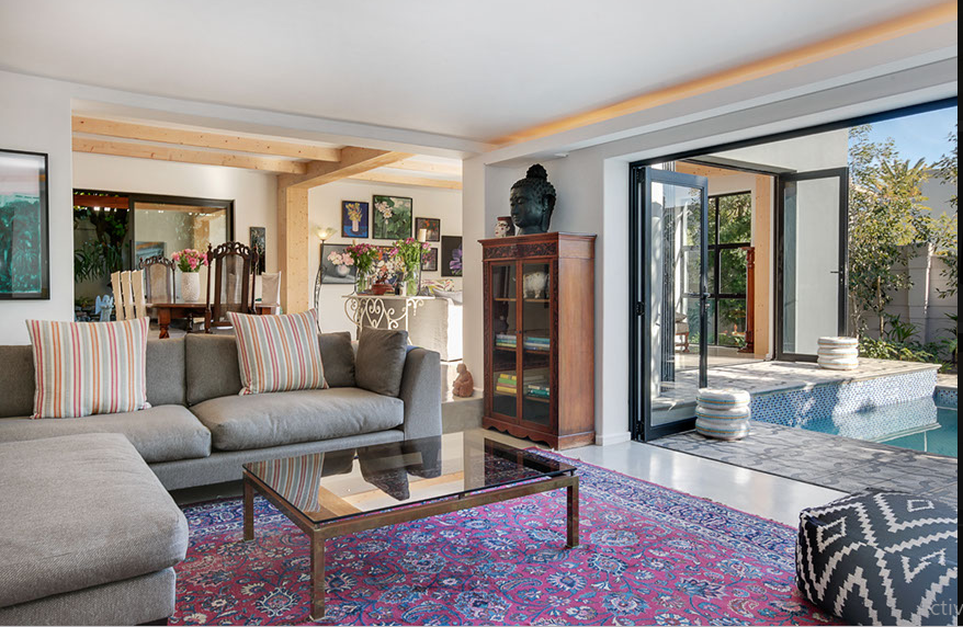 An extraordinary space in the prime of Camps Bay. The aesthetic ambiance of the green outdoor with the open living flow give the illusion of a small paradise within a paradise. This villa promotes open plan living at its best with loads of space, light and personalized attention to detail. The decor is a combination of new and old and is the perfect compliment to the owner, making it one of a kind. Ideally positioned within walking distance to the beach and the famous Camps Bay ‘strip’, famous for its restaurants, bars and cafes. Everything you need is right where you want it to be.
