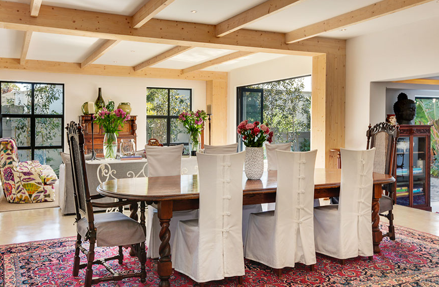 • Elegant dining room lies next to kitchen area, seating up to 8 guests