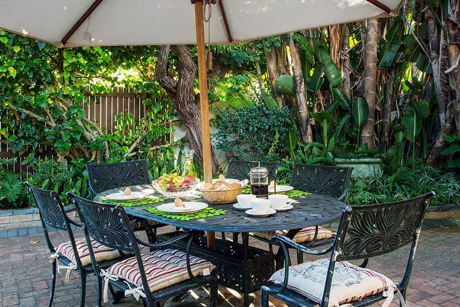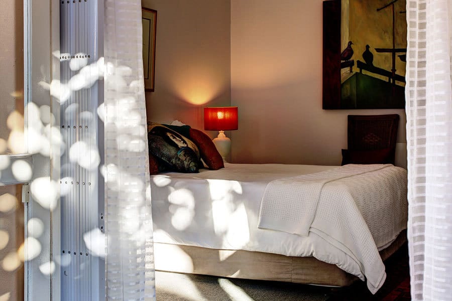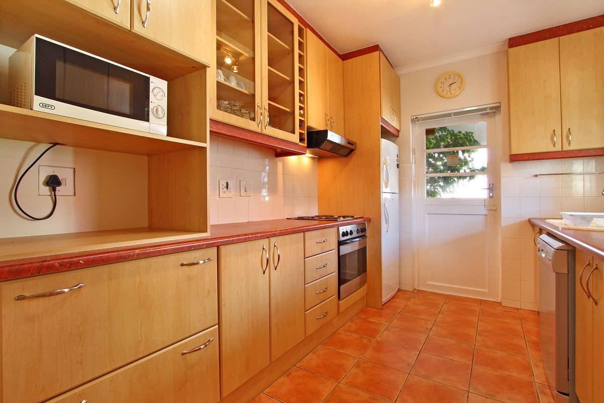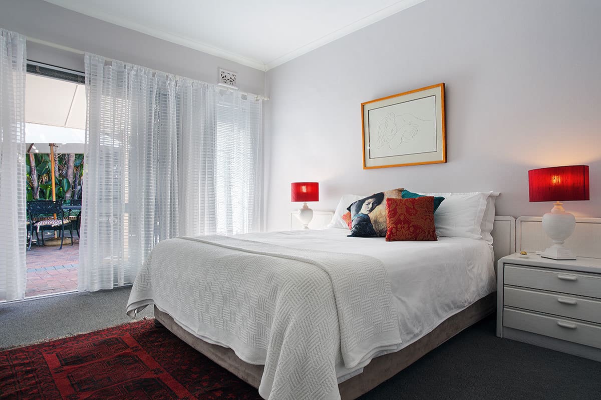 Bliss Cottage guarantees an enjoyable and hassle-free self-catering experience. An open-plan interior connects the lounge, dining room and kitchen. The dining area and lounge – with satellite TV – opens onto a private and enclosed outdoor patio with excellent built-in barbeque facilities. The kitchen is fully equipped with cutlery, crockery, cooking utensils, fridge/freezer, microwave, dishwasher and cooking basics like salt and pepper as well as some herbs and spices. A lock-up single garage houses the washing machine & dryer.
