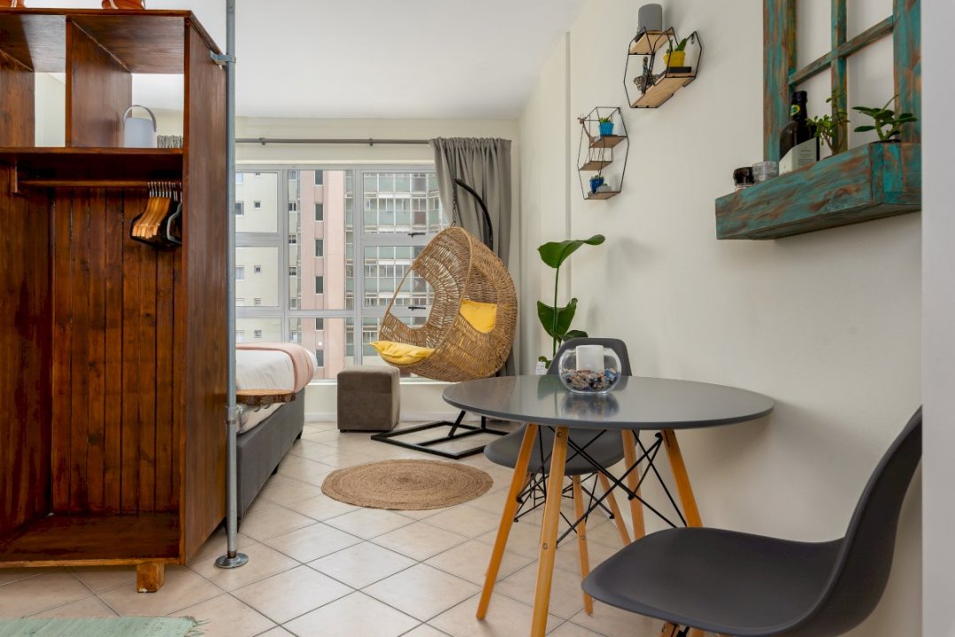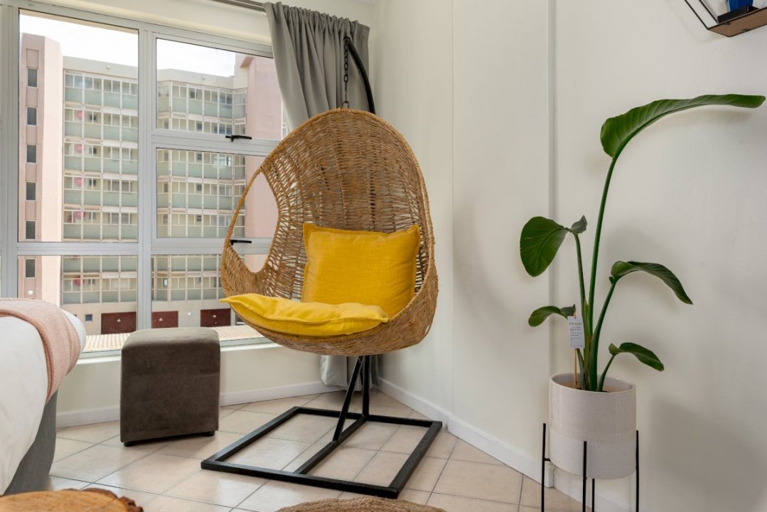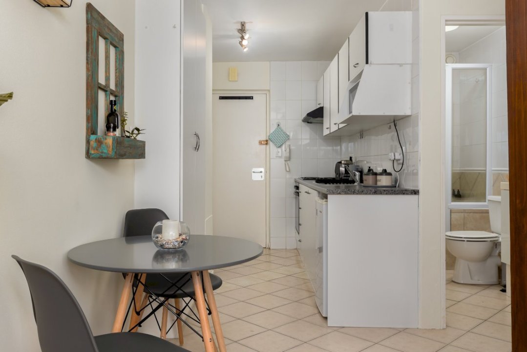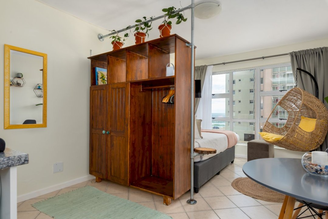Charming and bright studio apartment in the seaside suburb of Blouberg. Ideally located in a secure apartment block overlooking the beach, Signal Hill, Lion’s Head and Robben Island. Blouberg Beach, famous for its white sandy beaches, view of Table Mountain, and world-class kitesurfing conditions, and a selection of beachfront restaurants are just a walk away. Enjoy unlimited fibre and Netflix, even during load-shedding, as the apartment is equipped with a UPS.