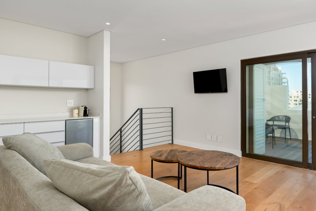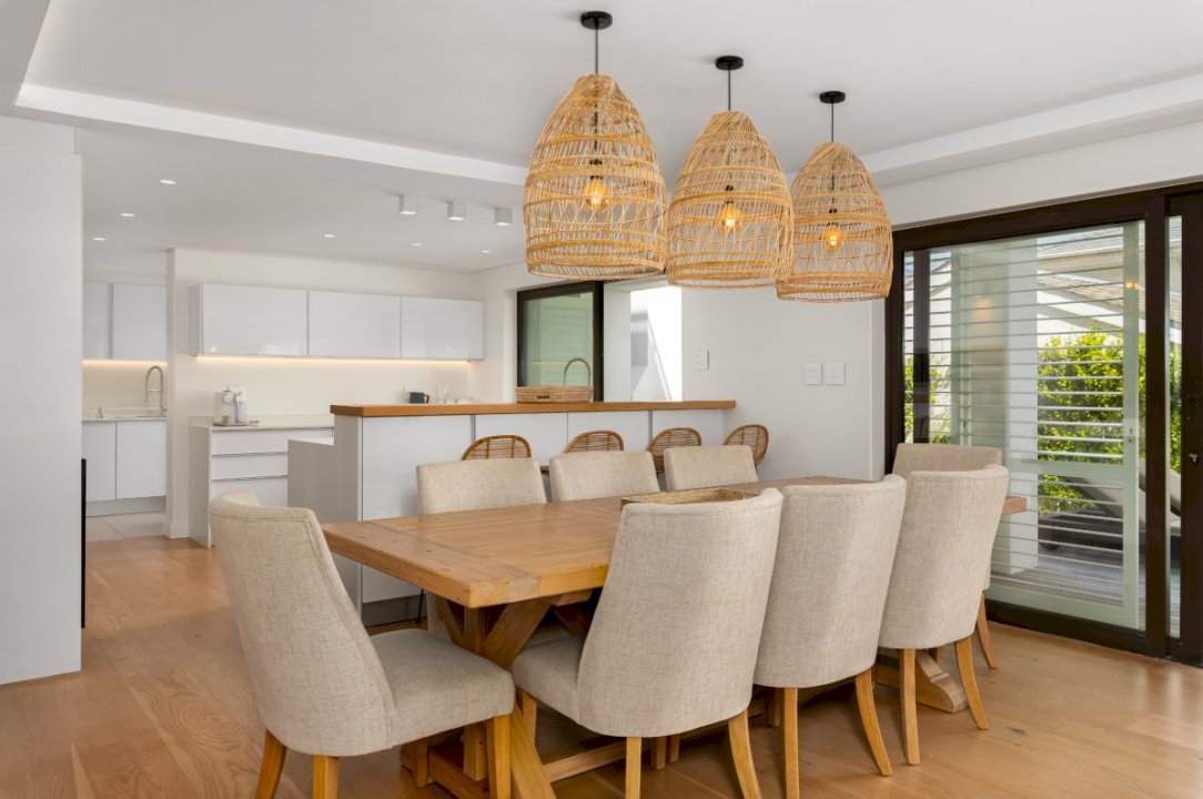 The living room on the third floor opens to a deck with outdoor seating overlooking the ocean. Enjoy the expansive view in the day or sunset evenings with family or friends over a relaxing glass of wine and board games. In season, southern right whales, orcas, humpback dolphins, Haviside dolphins, and Cape fur seals can be spotted roaming in the bay. Great white sharks are also known to live off the coast. You might get a lucky siting!