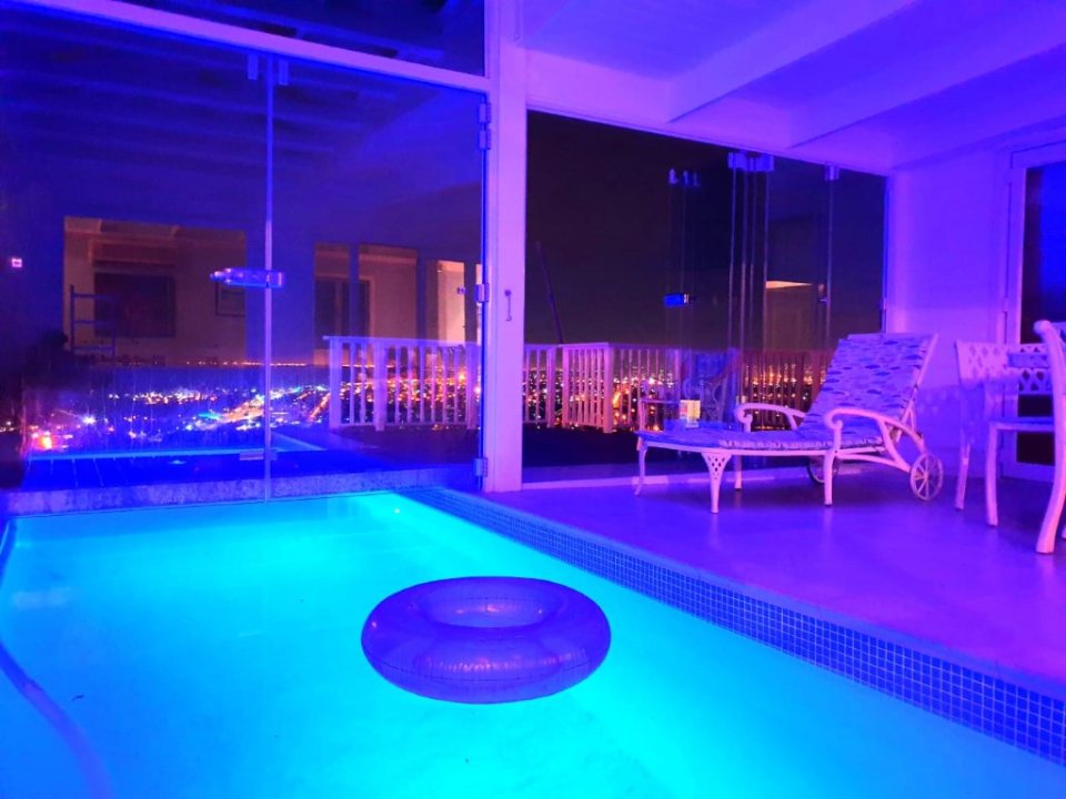 The main living area and pool deck are situated in the centre of the home creating the ideal social gathering point for your entire group. The furnished pool deck has sun loungers, dining furniture and a plunge pool that enjoys all-day sun with incredible views. The house has two master bedrooms on the upper level on either side of the pool. Wake up to views from 4 of the 6 bedrooms and enjoy preparing meals in the fully equipped kitchen.