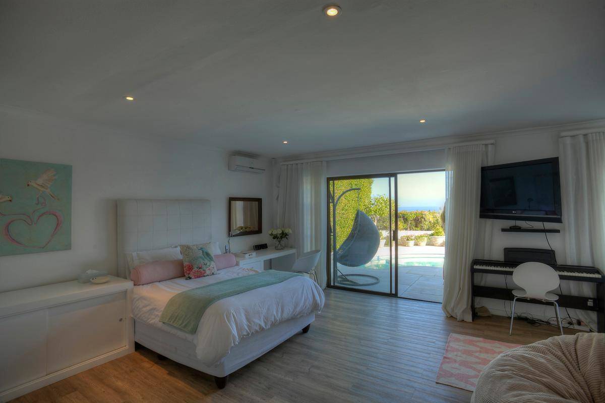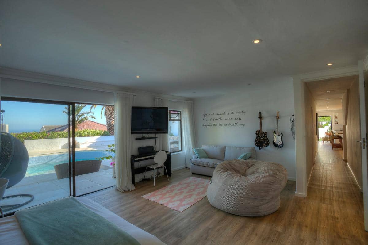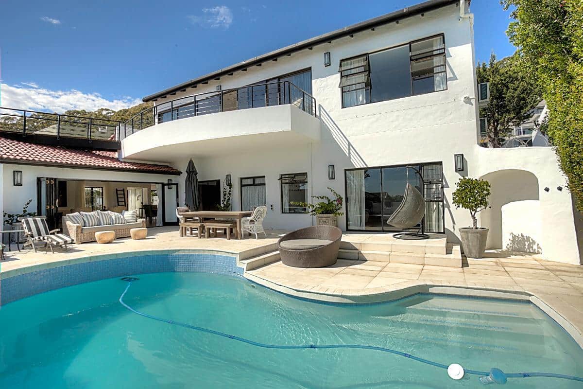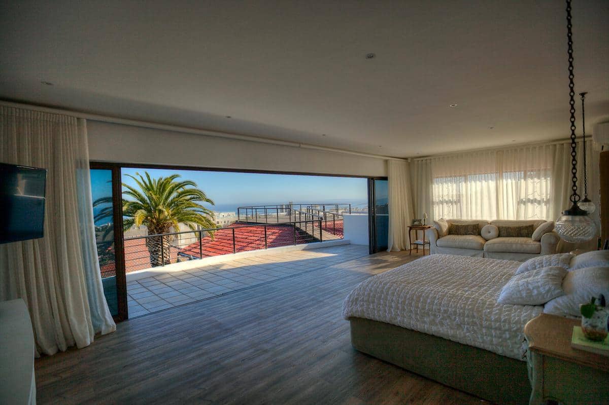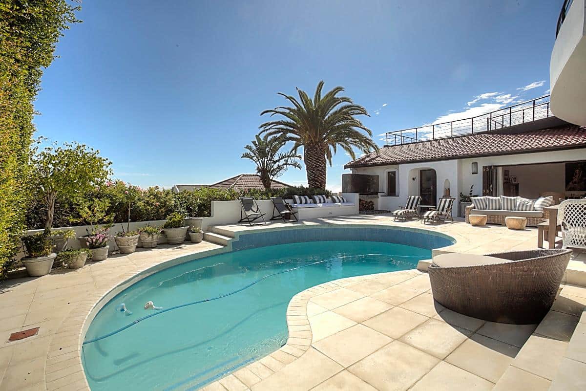 This beautifully finished home has 4 bedrooms, all en-suite. Located high up in the up-market suburb of Fresnaye, it has magnificent views of the mountains and sea, with breathtaking sunsets! It’s laid back Mediterranean style with all its luxuries, makes this home perfect for a relaxing, fun filled holiday.