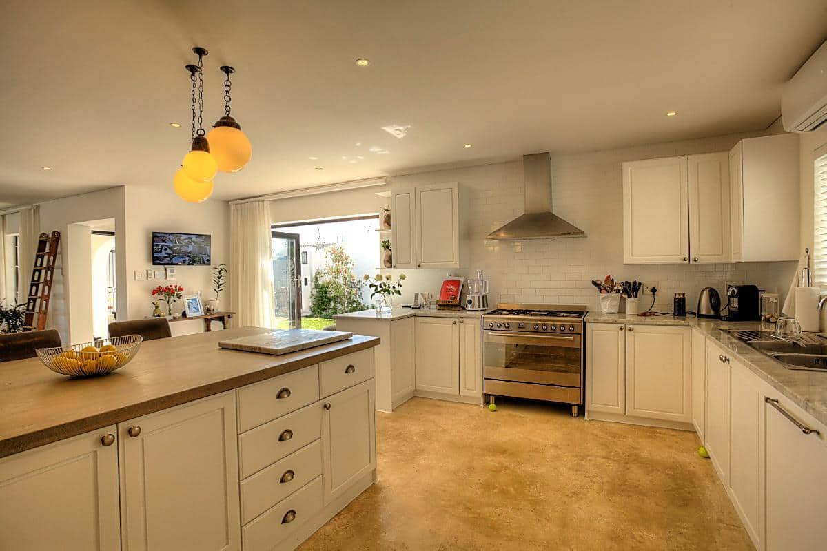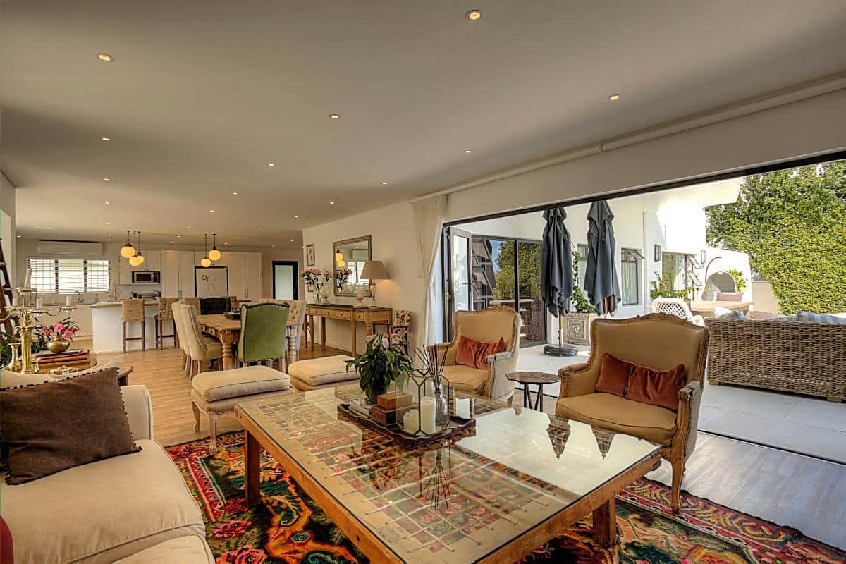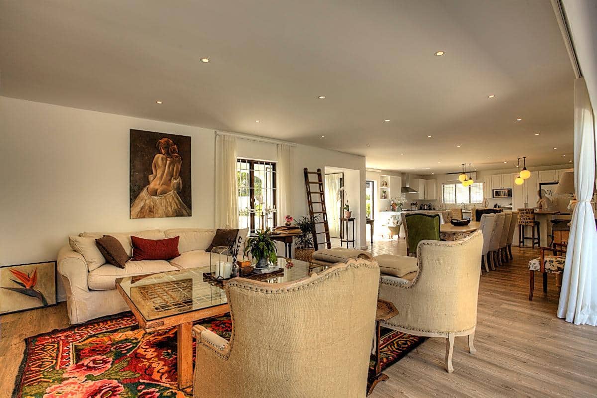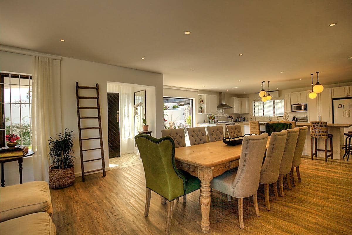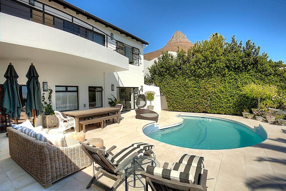 This beautifully finished home has 4 bedrooms, all en-suite. Located high up in the up-market suburb of Fresnaye, it has magnificent views of the mountains and sea, with breathtaking sunsets! It’s laid back Mediterranean style with all its luxuries, makes this home perfect for a relaxing, fun filled holiday.