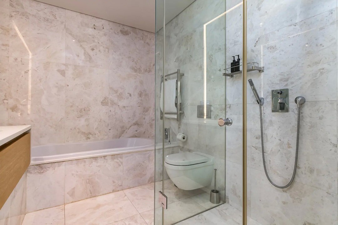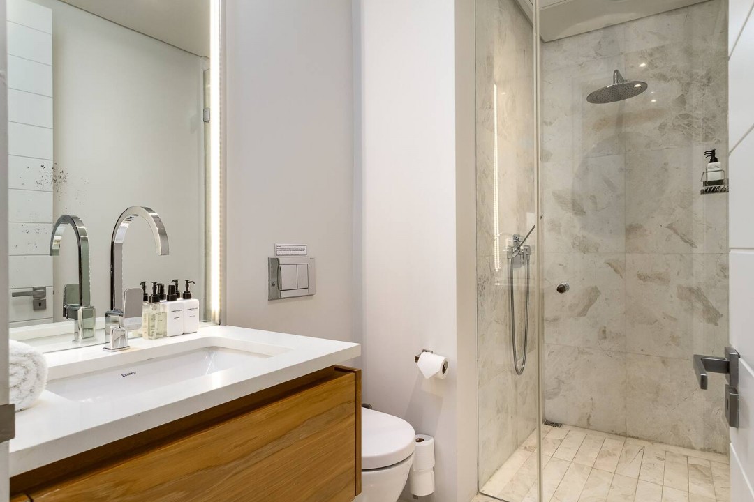 Retreat to one of three luxury bedrooms – two of which have ensuite bathrooms with luxurious bathtubs and spacious showers and air-conditioning, whilst the third has a private bathroom with shower.