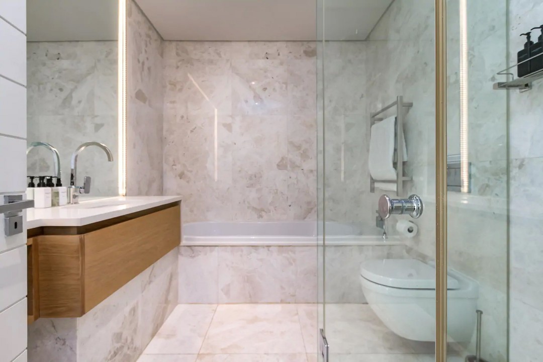 Other key features include: touch-screen alarm, underfloor heating, a camera-operated intercom, a top-end sound system, separate washer and dryer, two secure off-street parking bays, uncapped wifi and DSTV Premium..