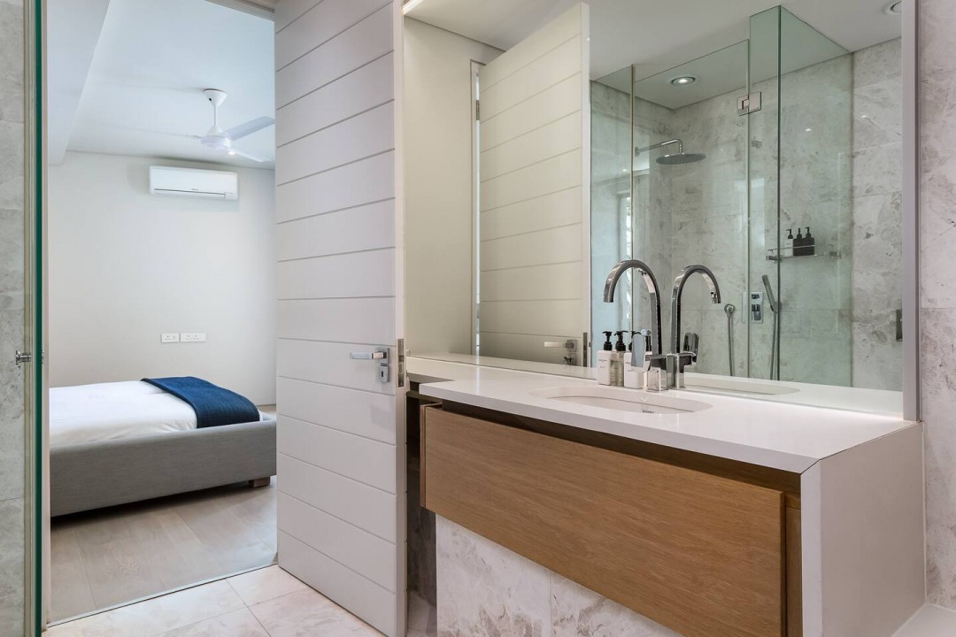 Please note that one of the three bedrooms does not have A/C or an ensuite bathroom and also does not have external windows (it has sliding doors onto the passage).