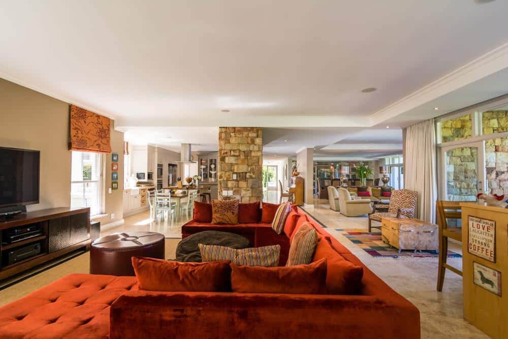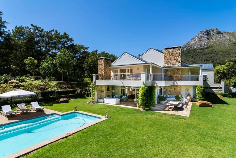 This beautiful home sits on a large, private and secluded piece of land, a little piece of heaven amongst a variety of well established trees and pine forests, with the wonderful sound of birdsong all around. The views to the north, south, east and west offer splendour, mountain and valley, it really is a wonderful part of Hout Bay.
