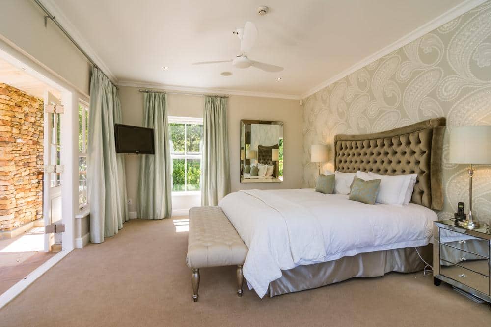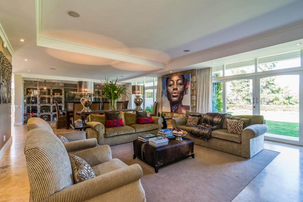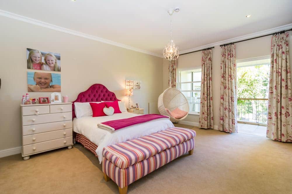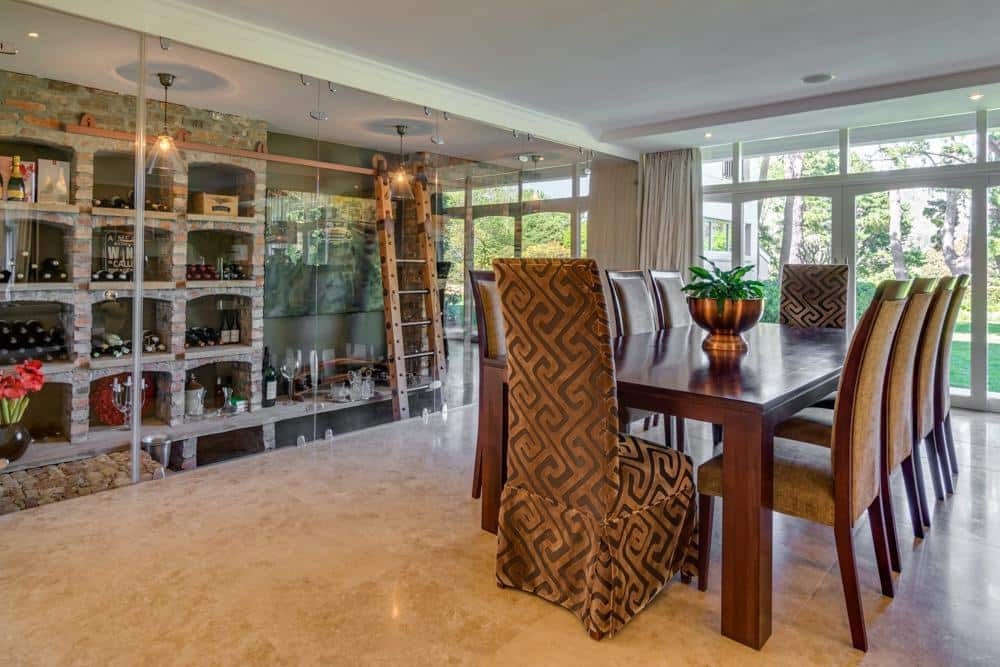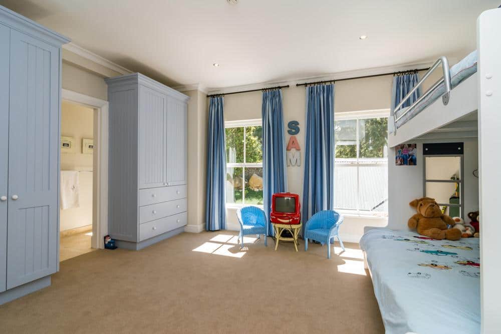Inside is done in style and quality, with the spoilings of both bar and wine cellar. The outside entertainment area is one of my favourites, with comfortable couches, fireplace, large table and chairs and a gas barbecue, all leading onto a manicured lawn with a heated swimming pool, soccer net, trampoline and flat ,endless space for the children to play and roam safely. If that is not enough, the sunset views from here are magical.