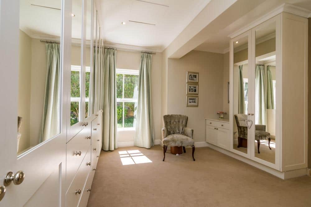 Dressing room with plenty of cupboard space, en suite with shower and bath