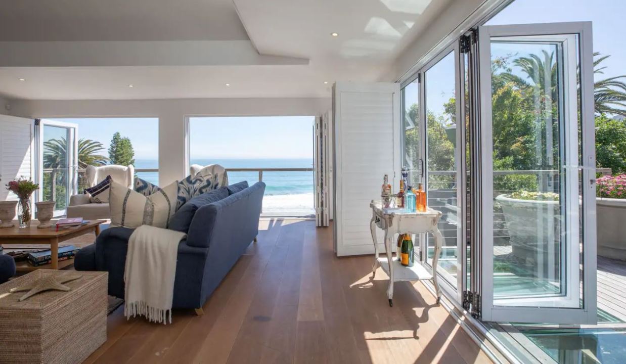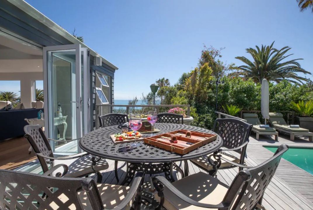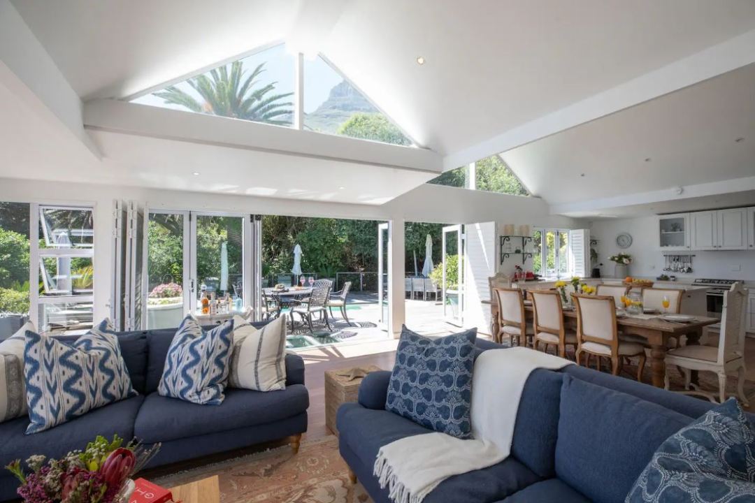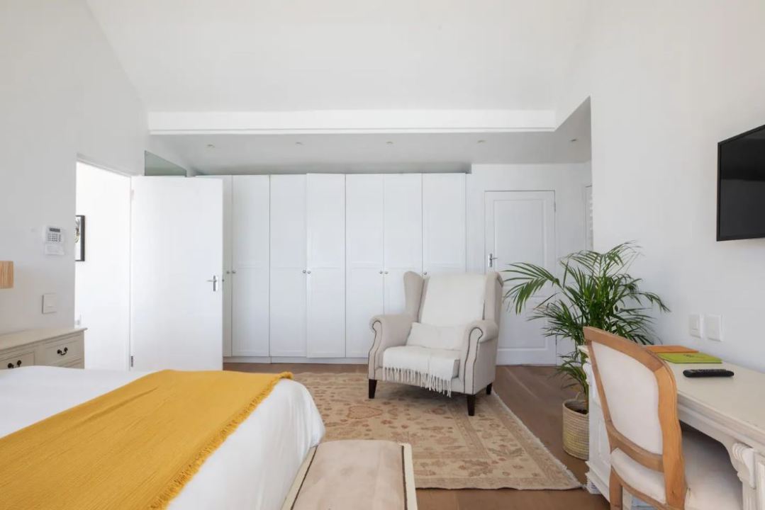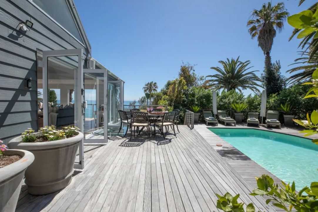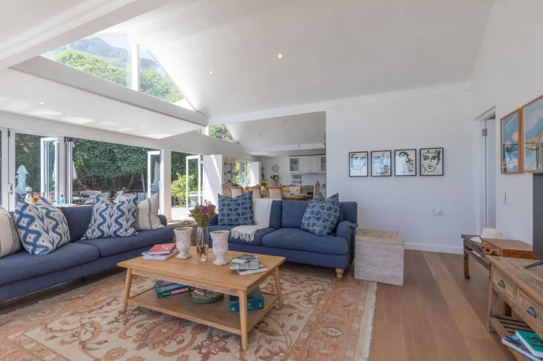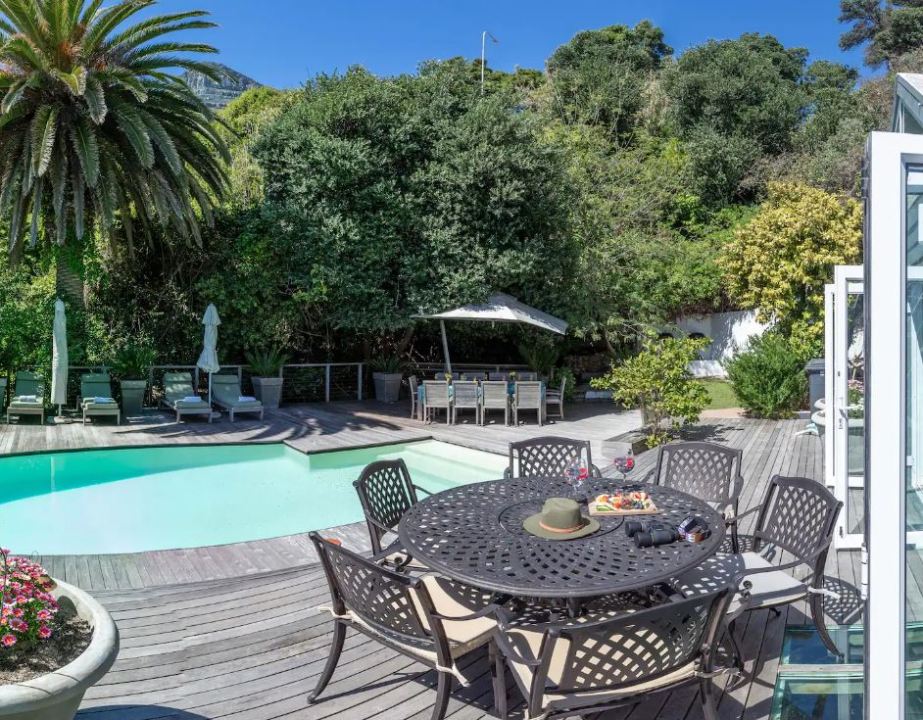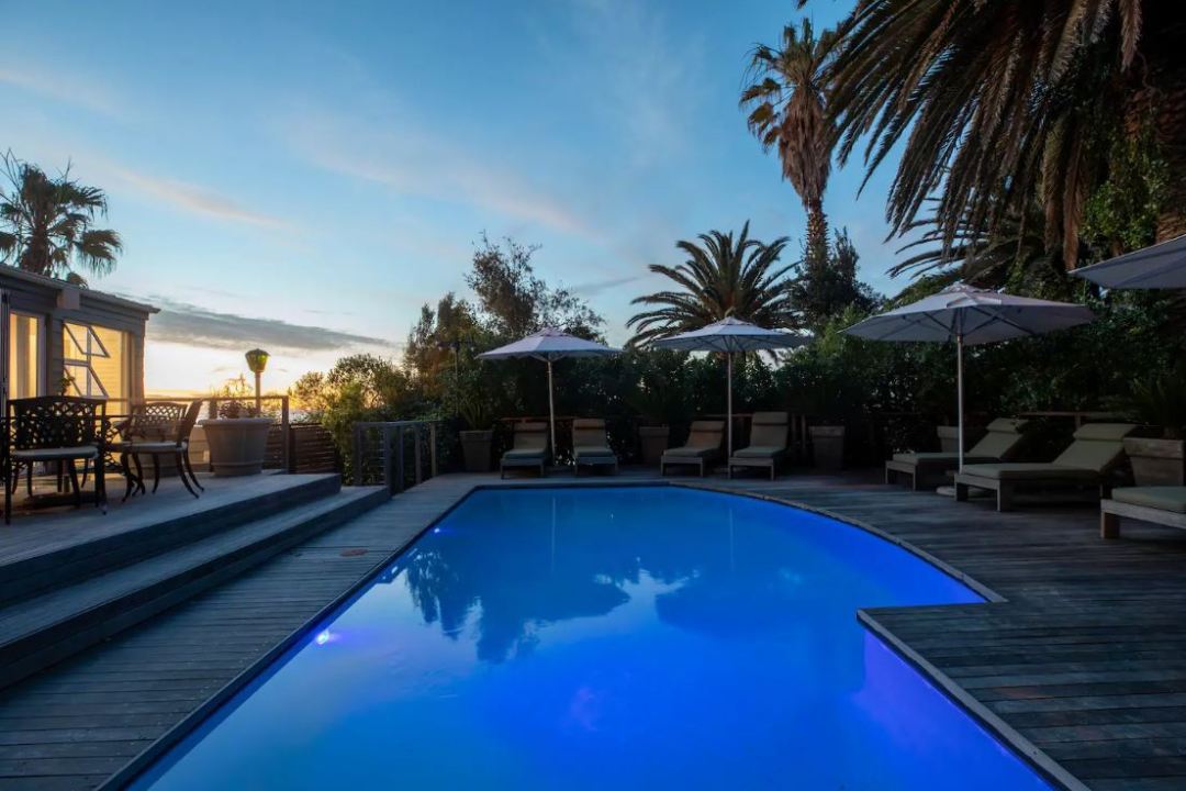 The upper level of the property is completely open plan with a huge kitchen and separate scullery, allowing for laid-back dining and entertaining. The al fresco living and outdoor area have seamless flow, with plenty of outdoor entertaining spaces. A large outdoor seated dining area, 8 sun loungers, and a huge pool complete this picture-perfect property. The upper level also consists of the main bedroom, and en-suite with expansive views over Clifton 3rd beach.