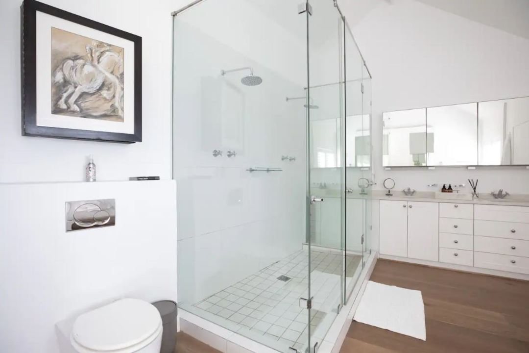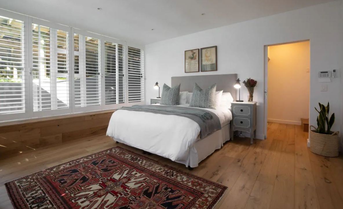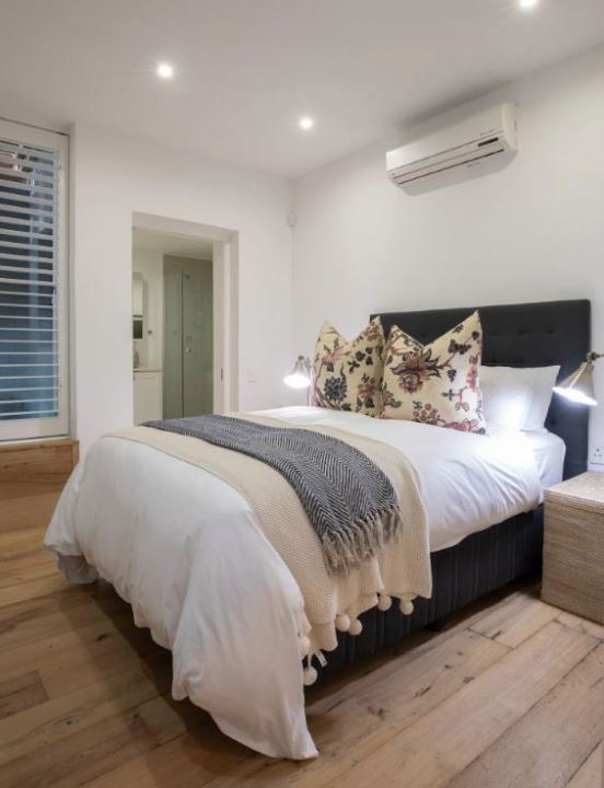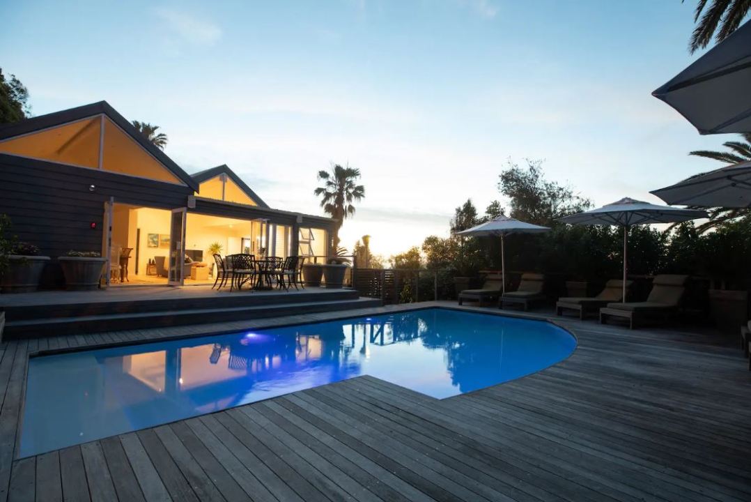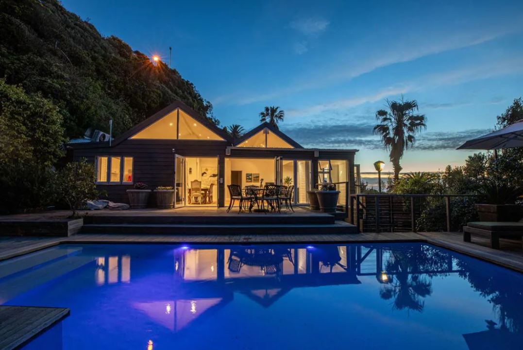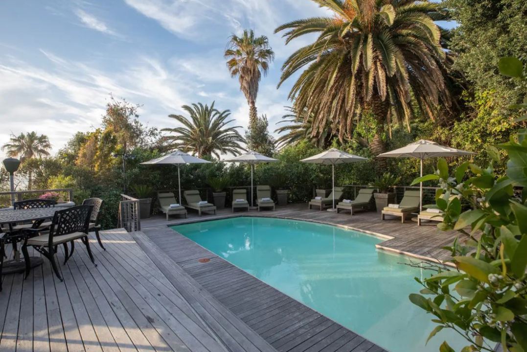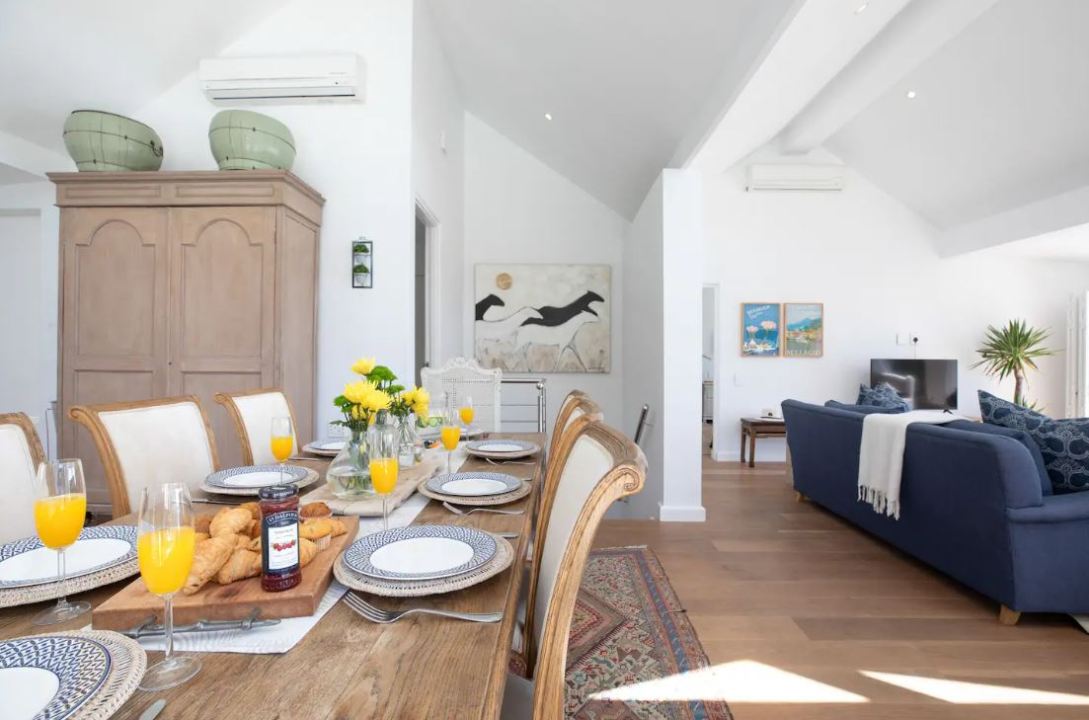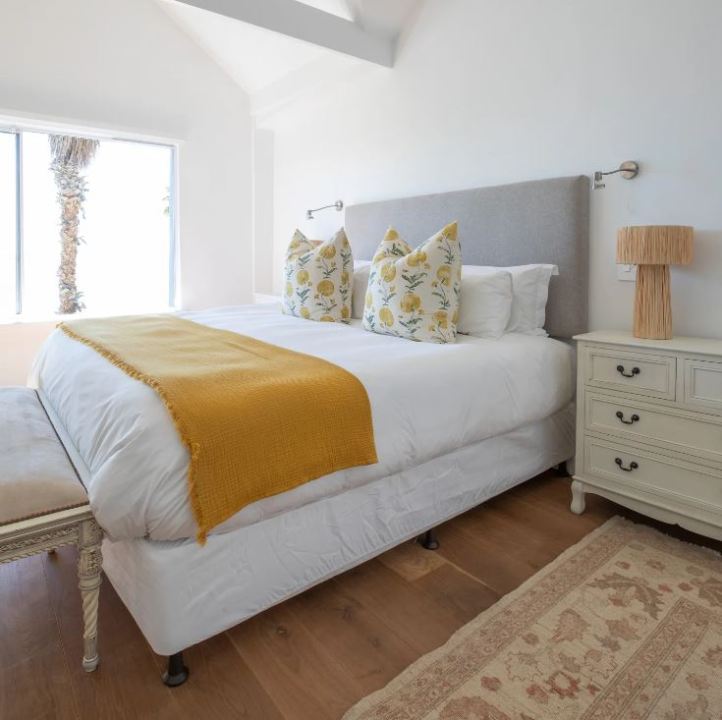The upper level of the property is completely open plan with a huge kitchen and separate scullery, allowing for laid-back dining and entertaining. The al fresco living and outdoor area have seamless flow, with plenty of outdoor entertaining spaces. A large outdoor seated dining area, 8 sun loungers, and a huge pool complete this picture-perfect property. The upper level also consists of the main bedroom, and en-suite with expansive views over Clifton 3rd beach.
